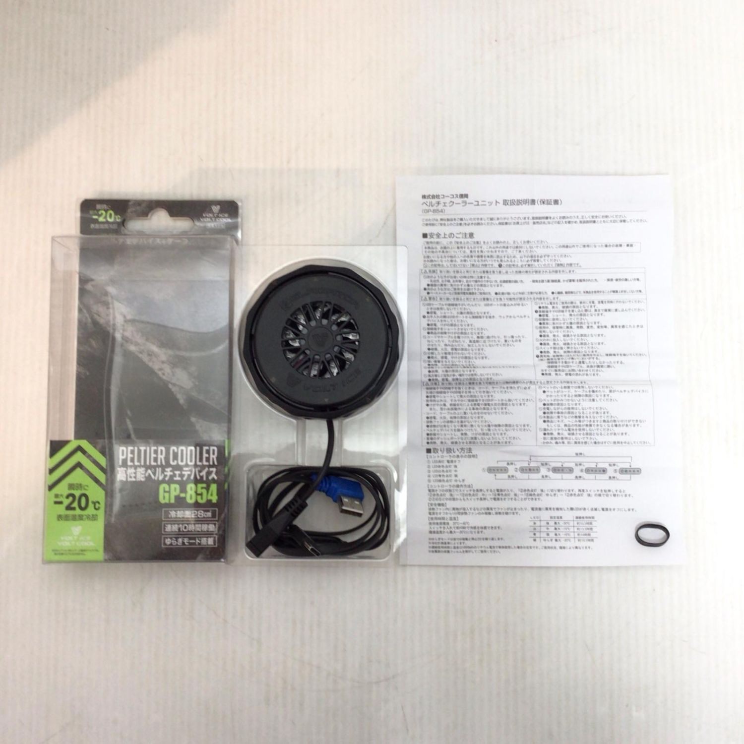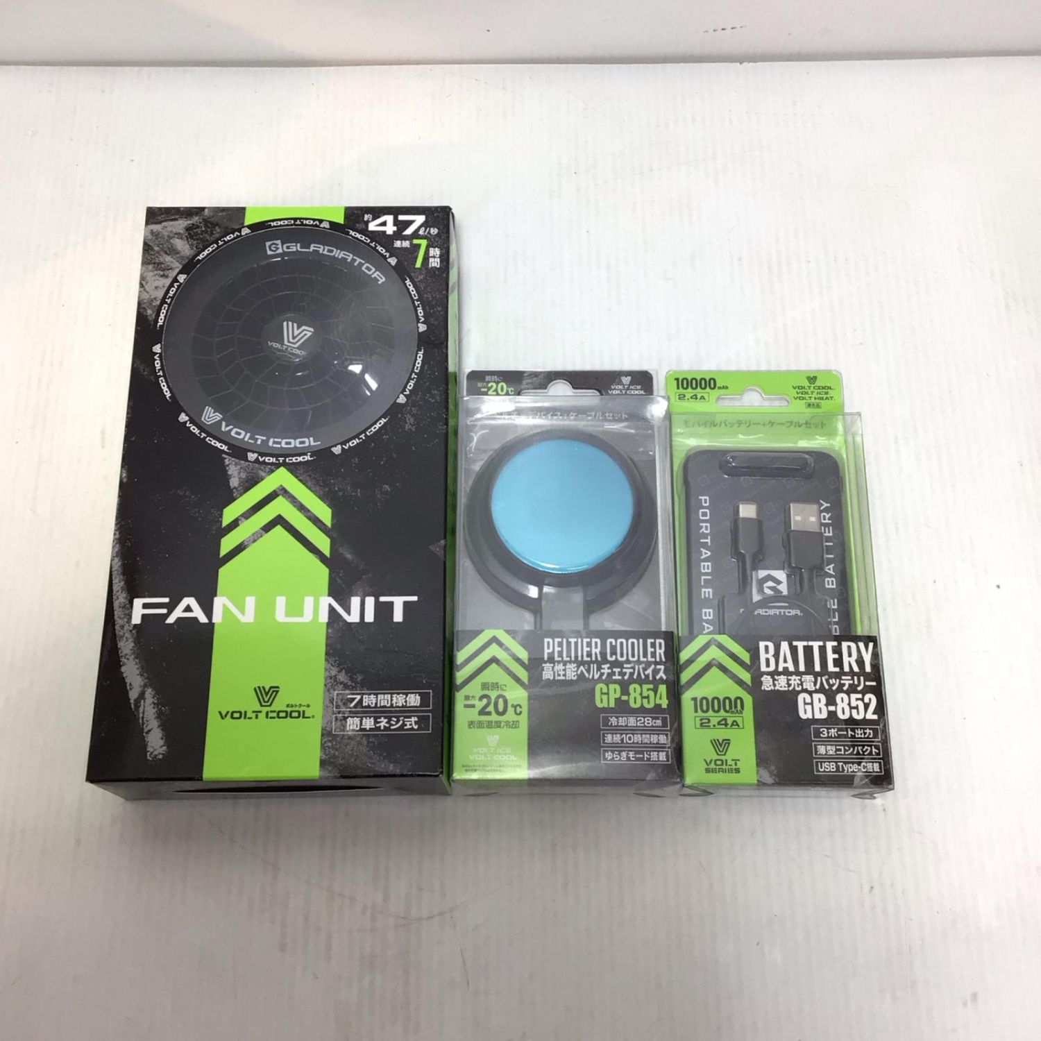 VOLTCOOL 空調服ファン・バッテリー・ペルチェデバイス 開封品(S) PSEマーク有 GF-856/GB-852/GP-854