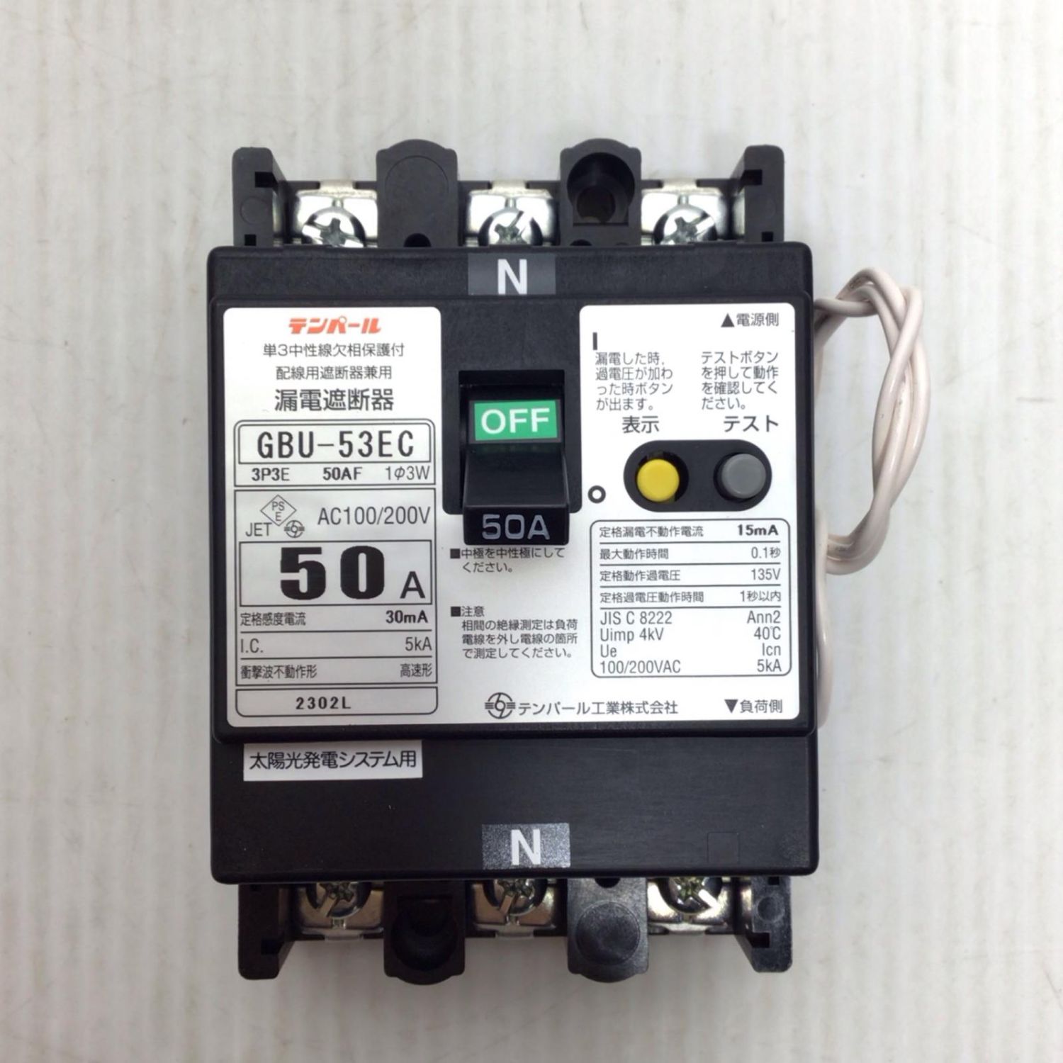 テンパール工業 漏電遮断器 未使用品(S) GBU-53EC