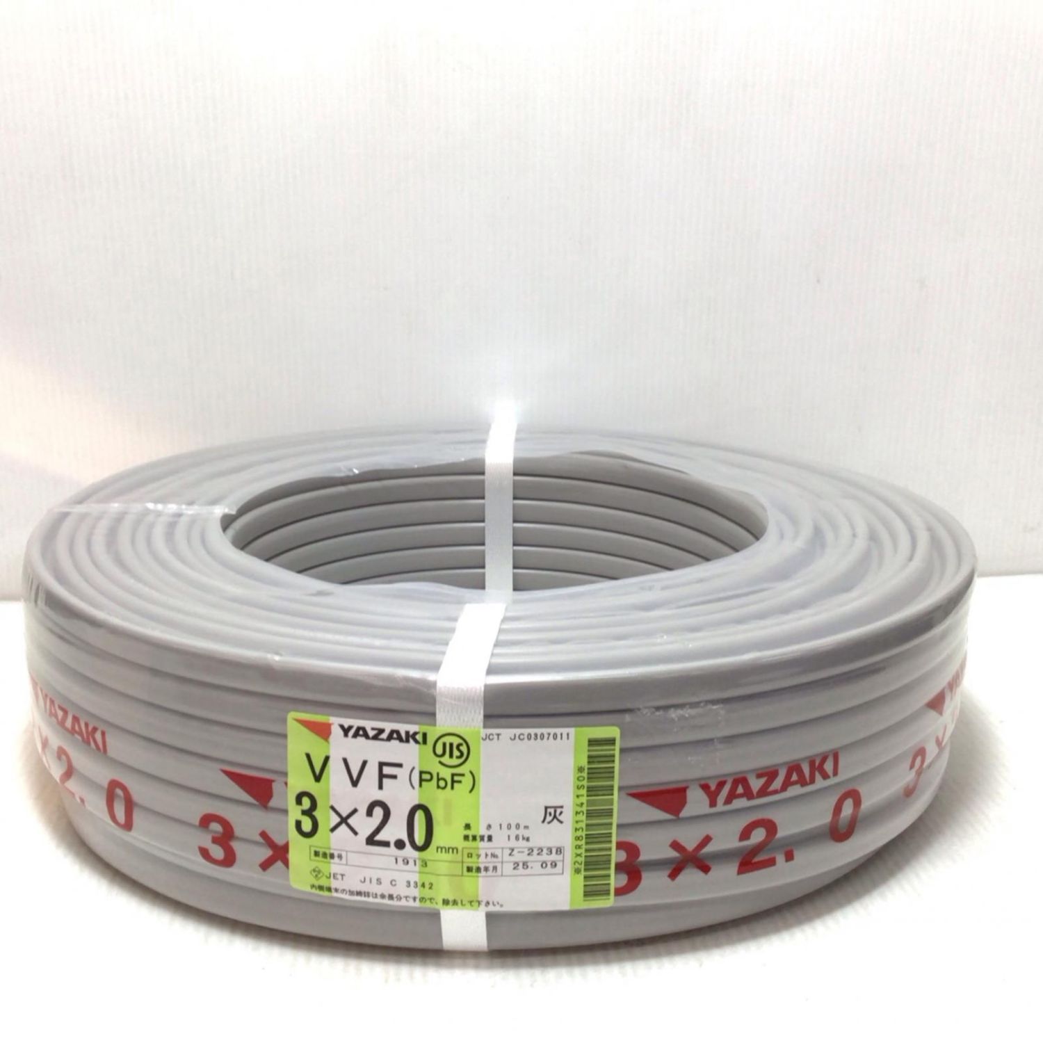 【商品名】中古 YAZAKI VVFケーブル 未使用品(S) 3芯 2.0mm×100m 2025年9月(令和7年) Sランク