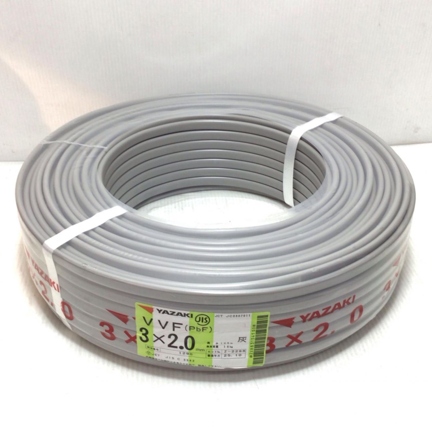 【商品名】中古 YAZAKI VVFケーブル 未使用品(S) 3芯 2.0mm×100m 2025年10月(令和7年) Sランク