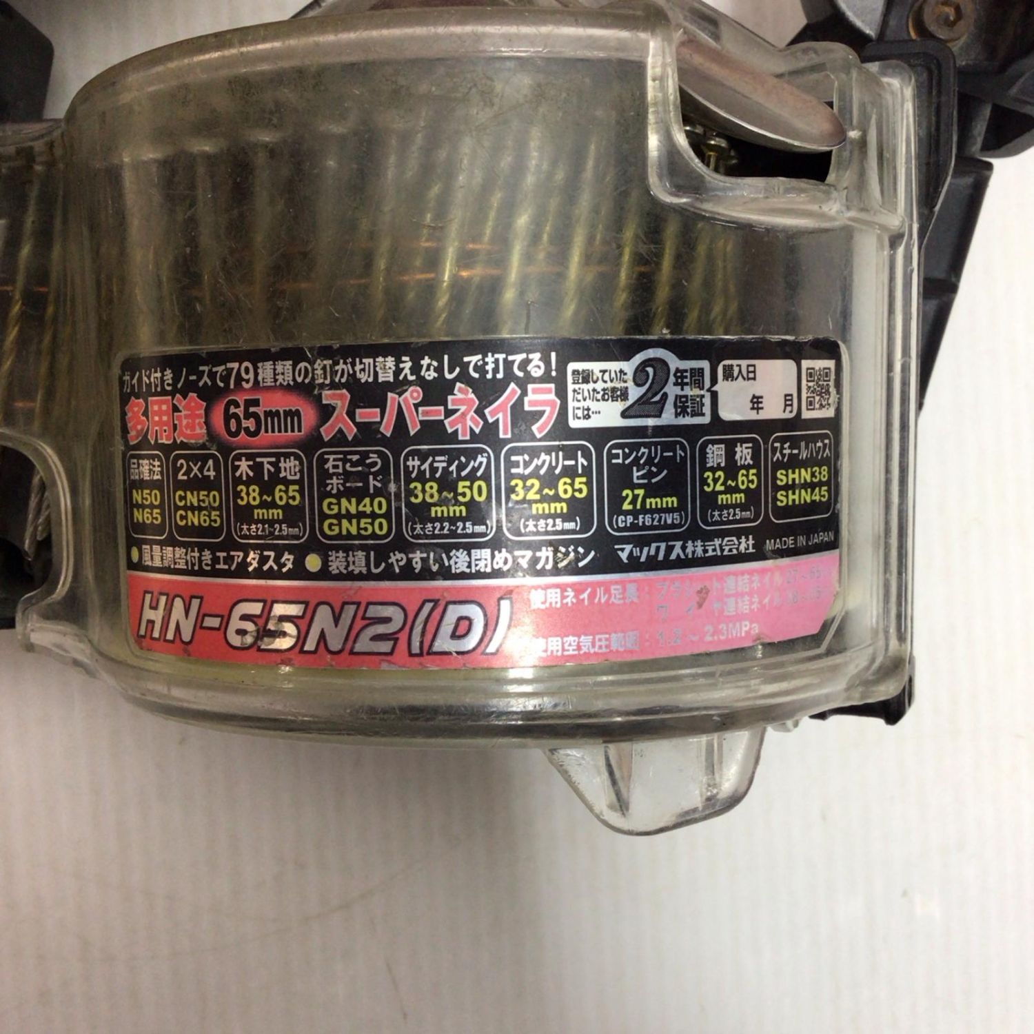 MAX マックス エア釘打ち 程度B 本体のみ 高圧 27~65mm 16C27116F HN-65N2(D) レッド