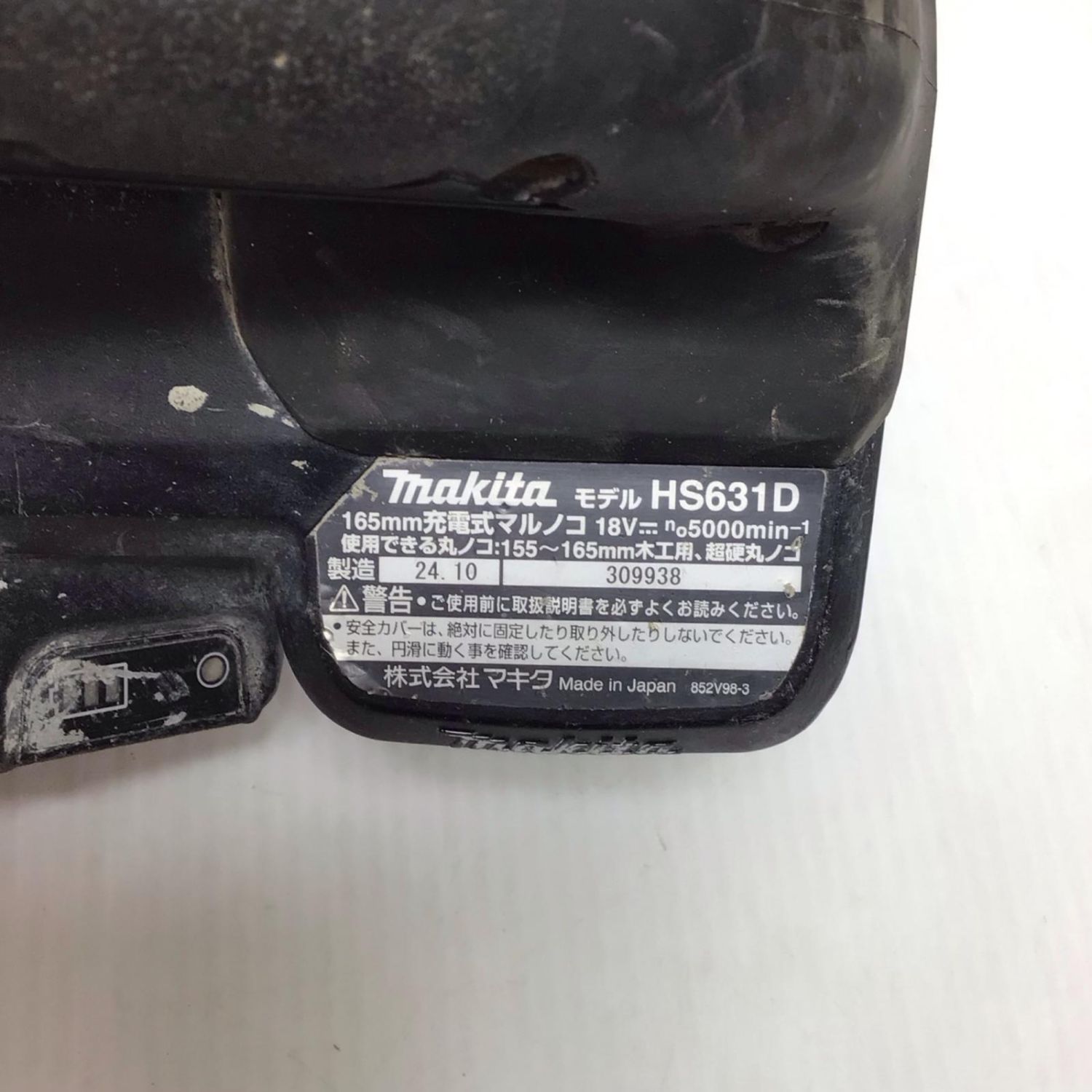 MAKITA マキタ 丸のこ 程度C 本体のみ コードレス式 165mm 18v 309938 HS631D ブラック