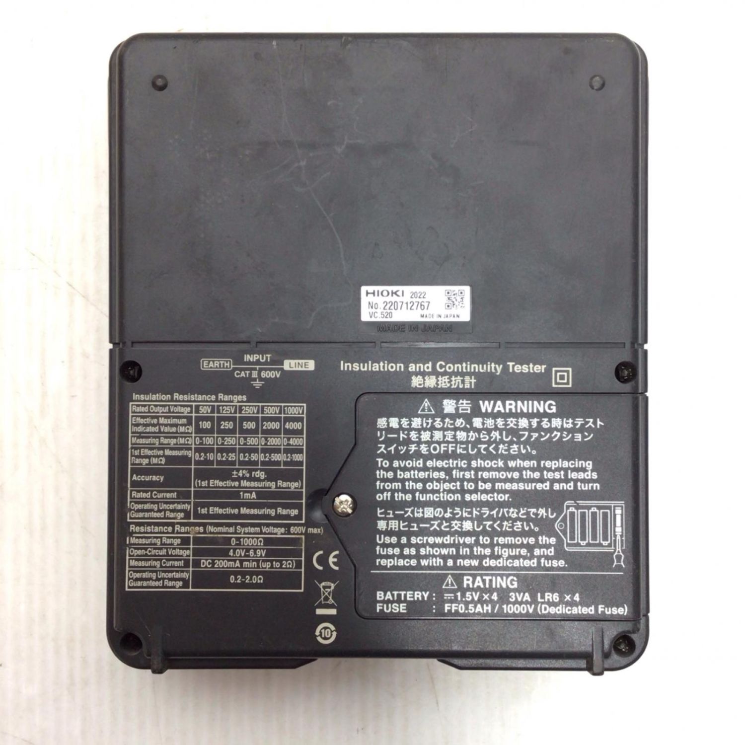 【商品名】中古 HIOKI 絶縁抵抗計 程度B プローブ・クリップ付 IR4051 Bランク