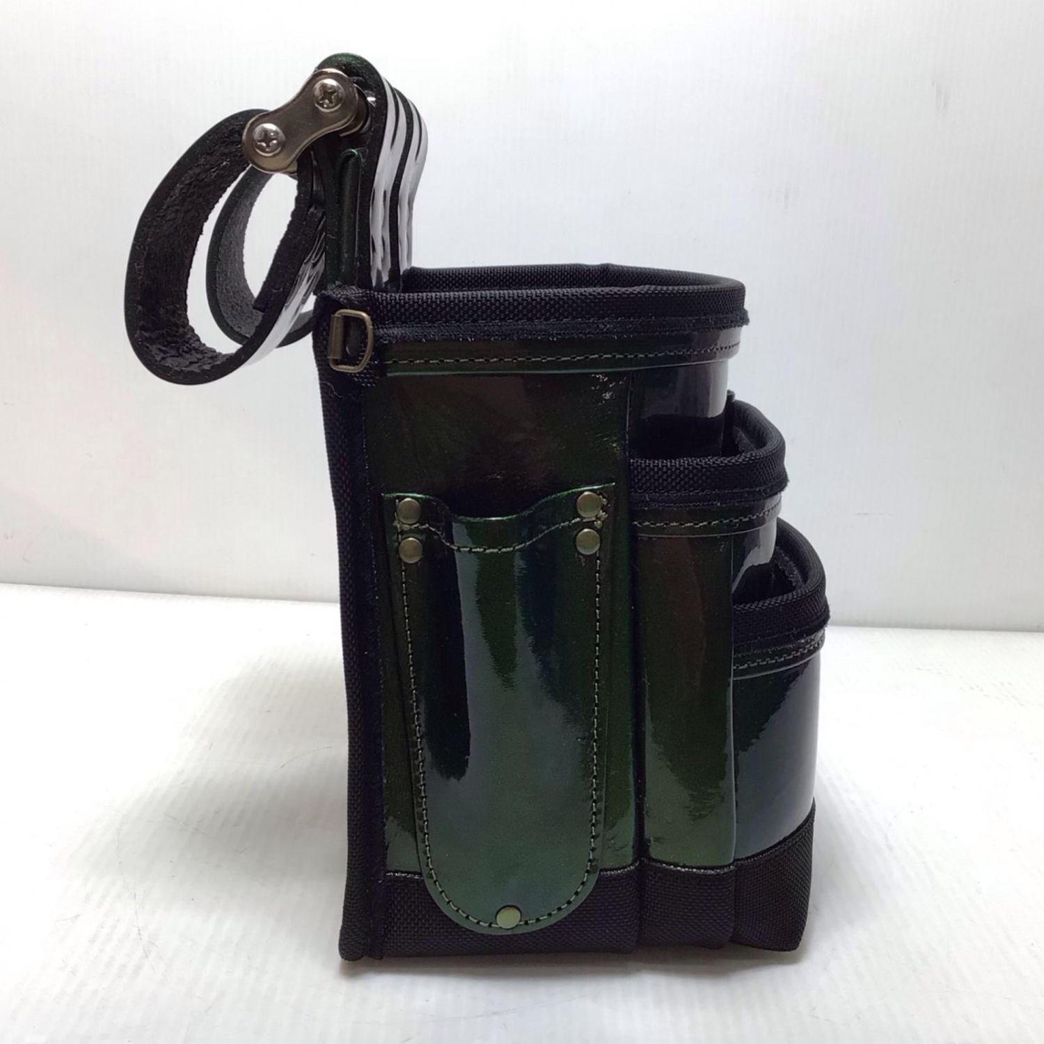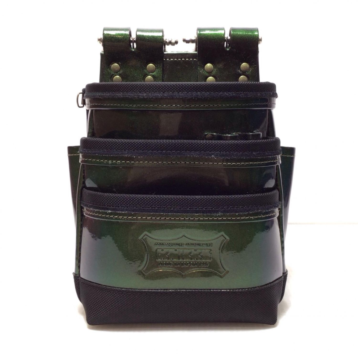【商品名】中古 KNICKS チェーンタイプ総ヌメ革使用3段腰袋 程度A KBB-301DDX マジョーラカラー グリーン Aランク