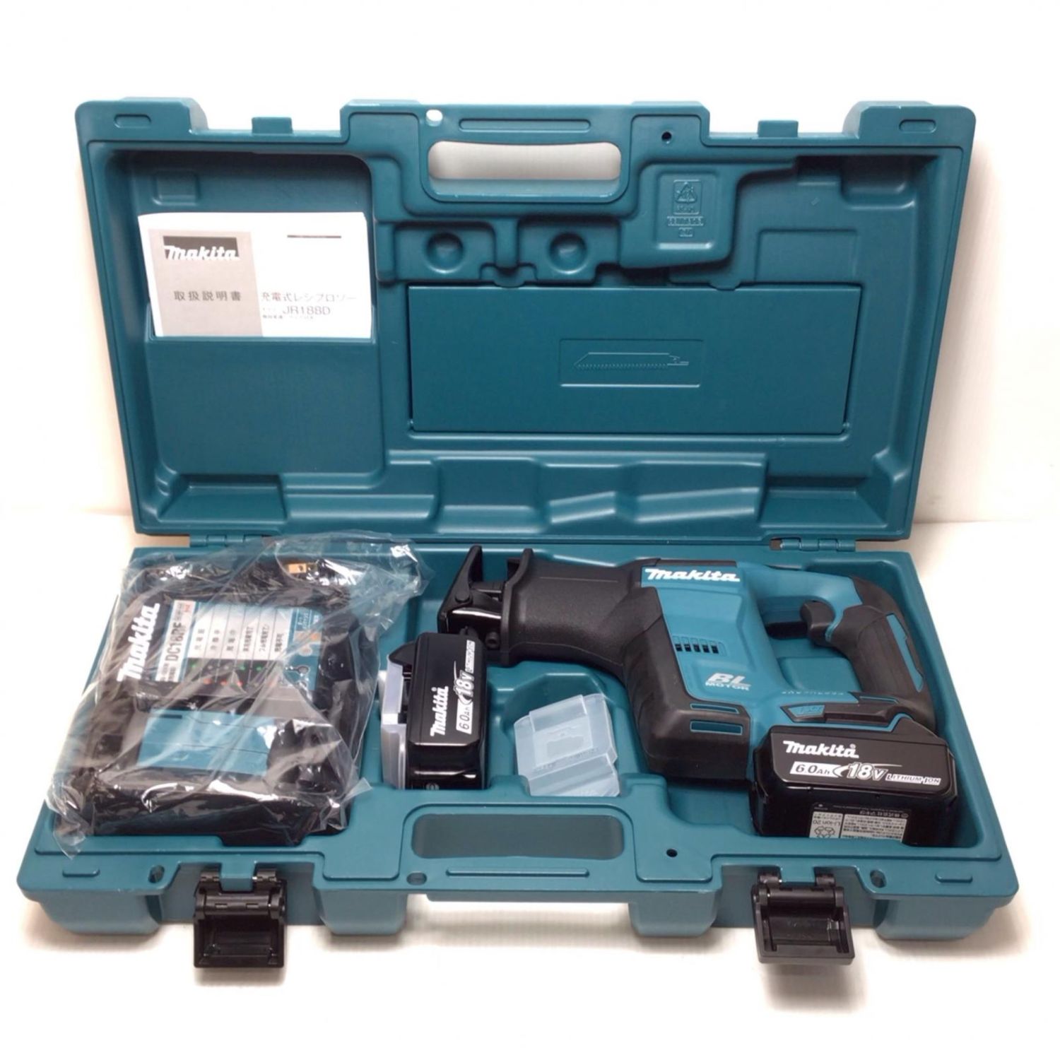 MAKITA マキタ レシプロソー 未使用品(S) 充電器・充電池2個・ケース付 コードレス式 18v 6.0Ah 588603Y JR188DRGX ブルー