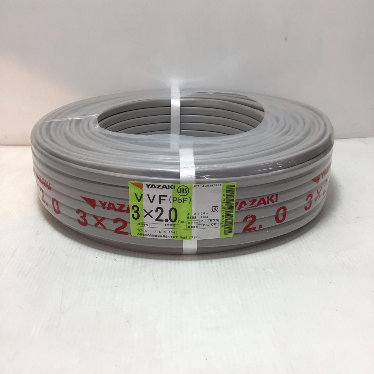 【商品名】中古 YAZAKI VVFケーブル 未使用品(S) 3芯 2.0mm×100m 2025年6月(令和7年) Sランク