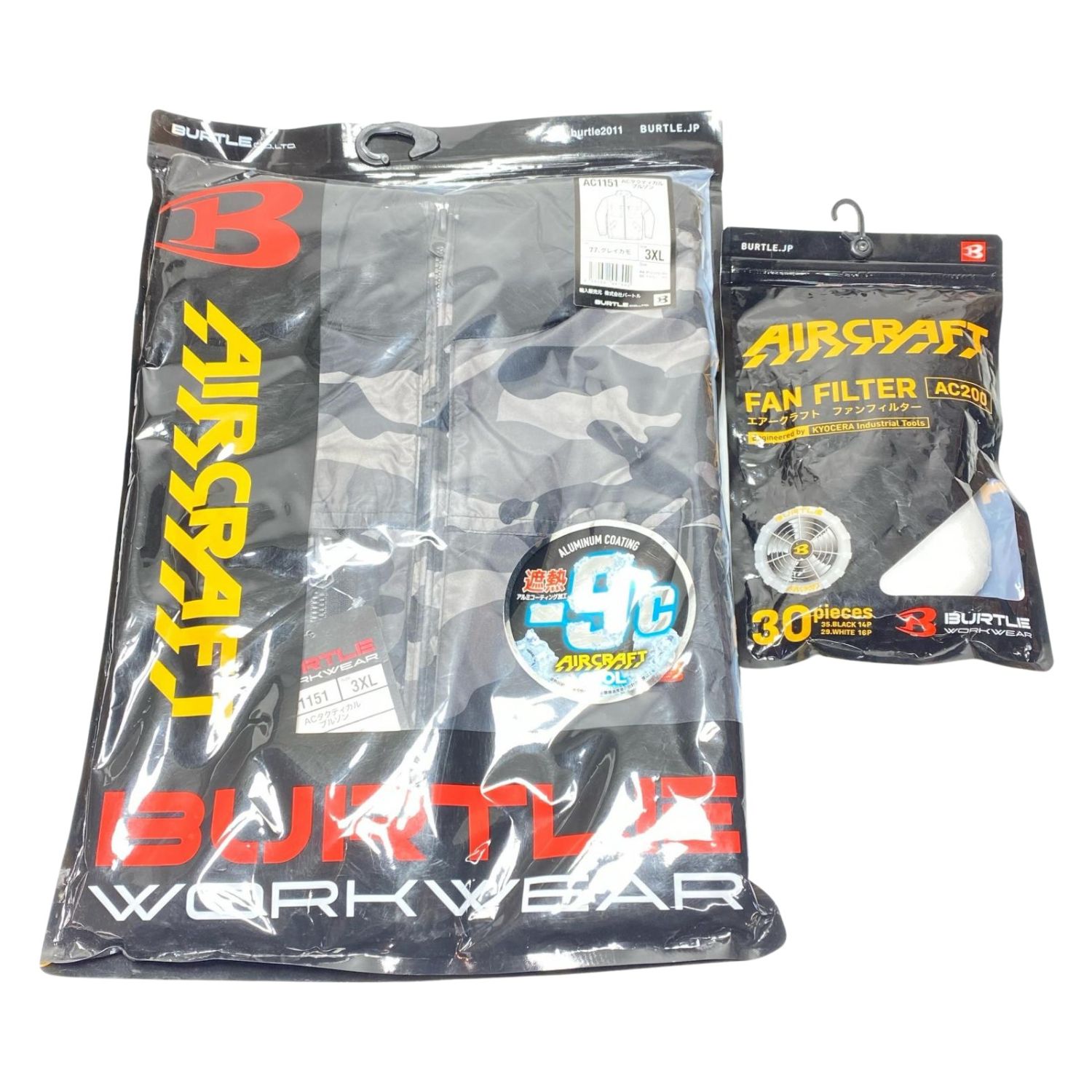 BURTLE 空調服セットブルゾン・バッテリー・ファン・ケーブル・フィルター 3XL AC1151/AC300/AC310/AC320/AC200 ブラック迷彩
