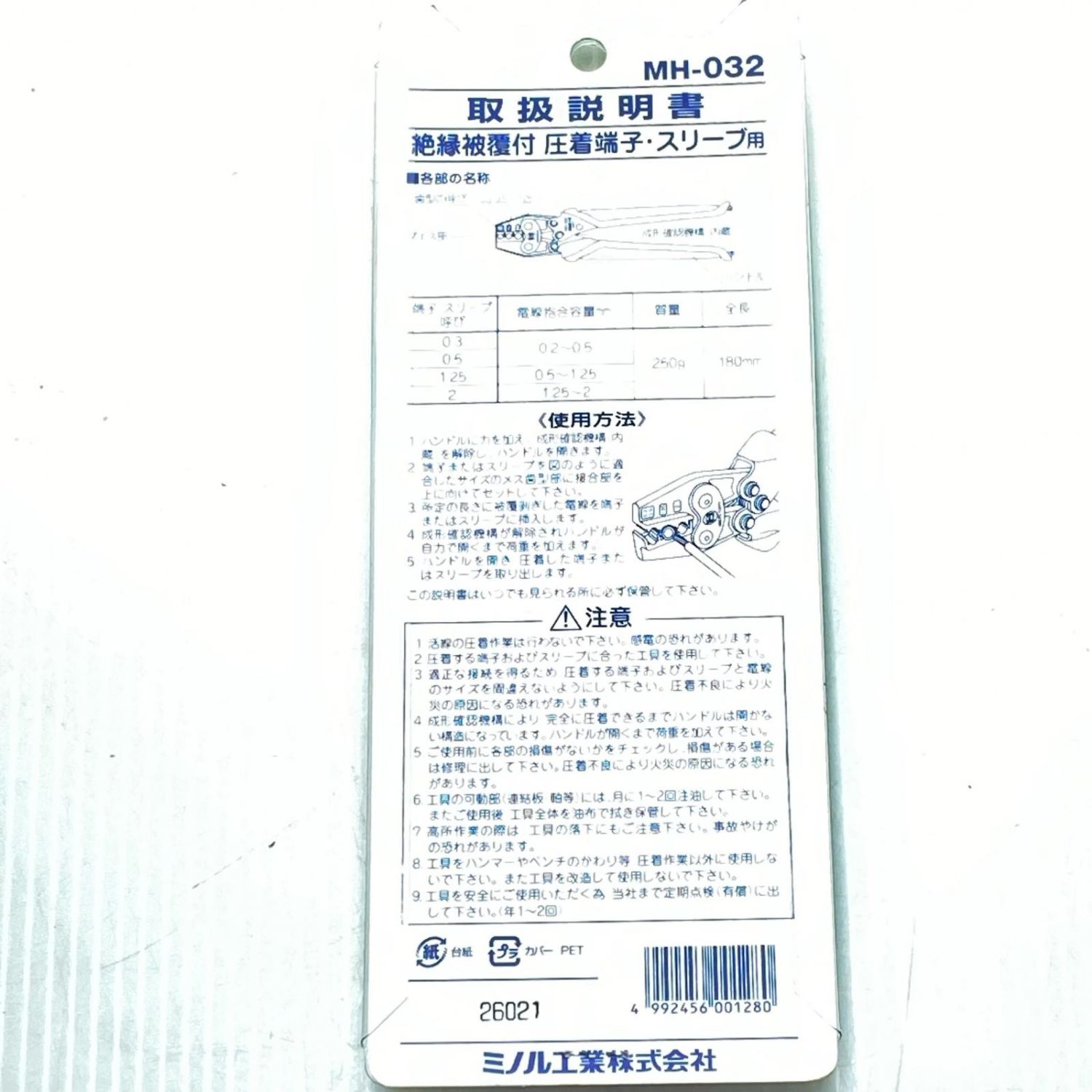 ミノル工業 圧着工具 未使用品(S) MH-032