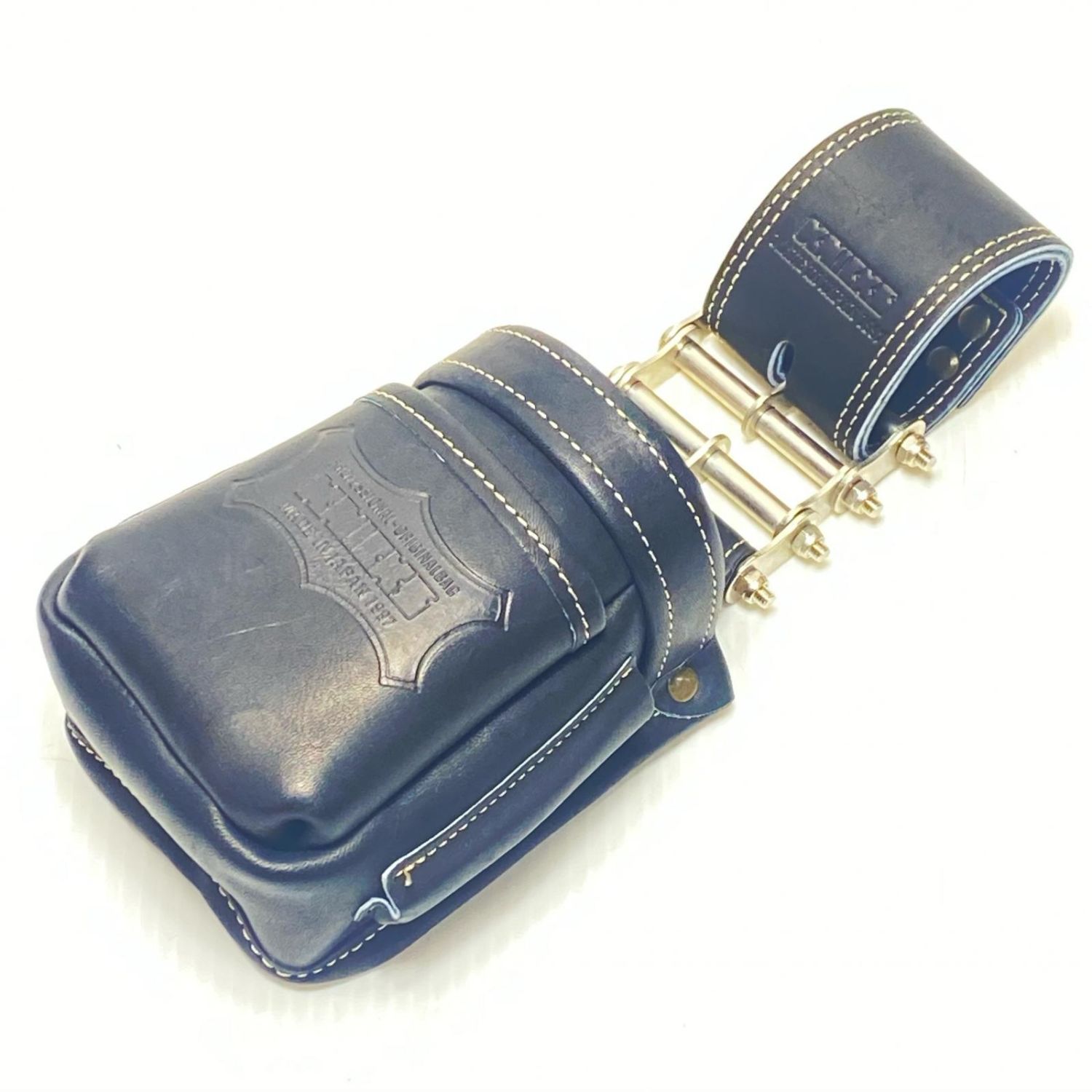 【商品名】中古 KNICKS 腰袋 ベルトループ・3連金具付 グローブ革 小物腰袋 VAストリッパーフォルダー ブラック Cランク