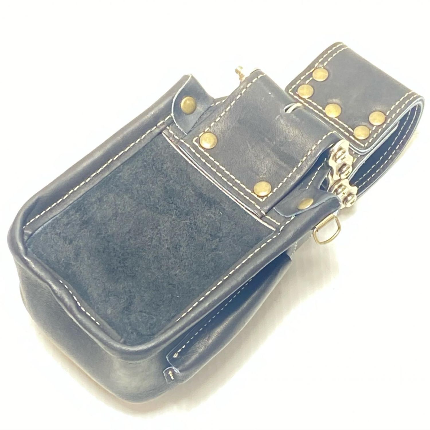 KNICKS 腰袋 ベルトループ・3連金具付 グローブ革 小物腰袋 VAストリッパーフォルダー ブラック