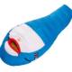 ダウンはスペイン産ホワイトダックダウン(770FP/超撥水加工)。ダウン量630g。台形ボックスキルト構造。表生地の青部分は20dnオーロラライト(撥水加工)、白部分は20dnナイロンタフタ。裏生地は15dnナイロンリップシレ(撥水加工)。快適使用温度-5°、下限温度-10℃。マミー型。付帯機能はショルダーウォーマー、ドラフトチューブ。収納袋が付属。洗濯機使用可。日本製。