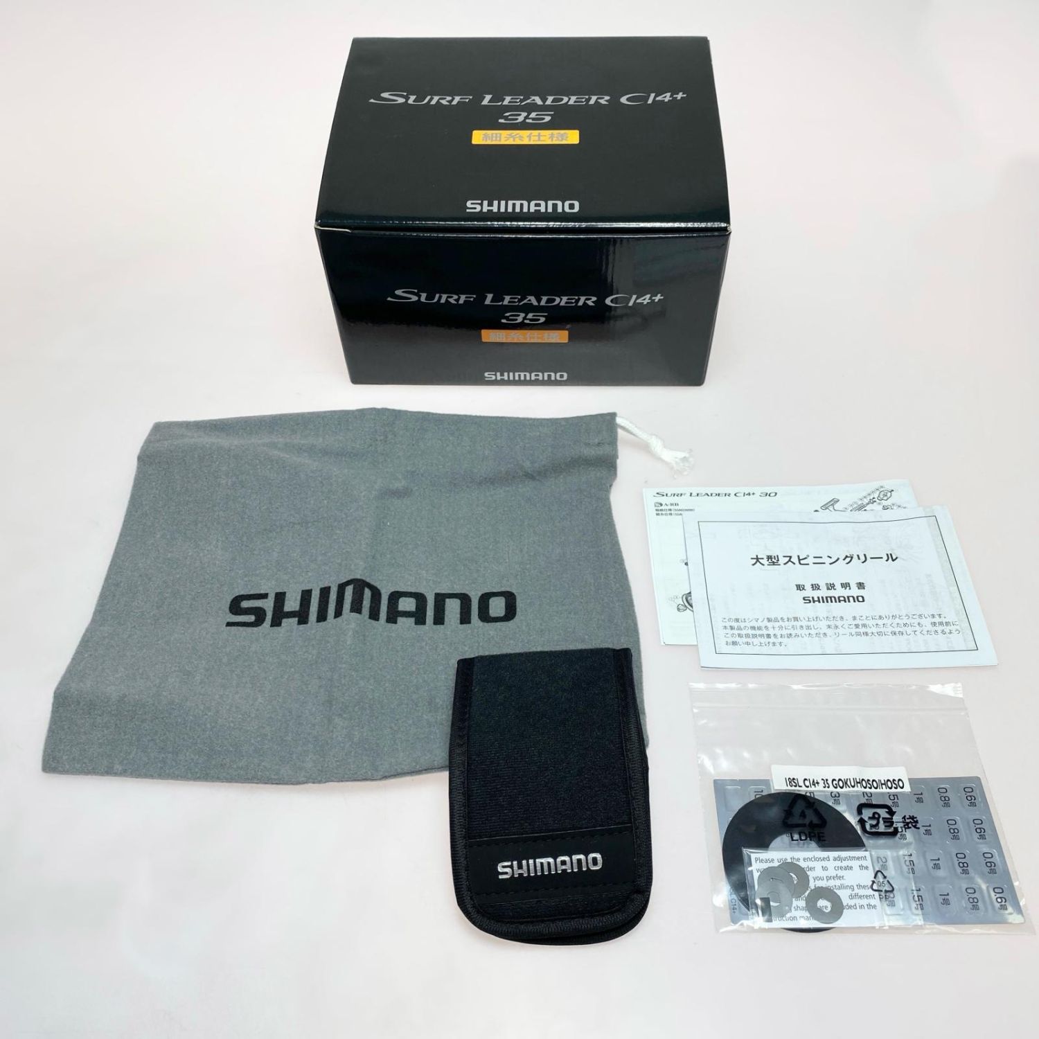 【付属品】保存袋,取扱説明書,調整ワッシャー,パーツリスト 取扱説明書、パーツリスト、保存袋、調節ワッシャー、スプールバンド付き、写真の物が全てです。