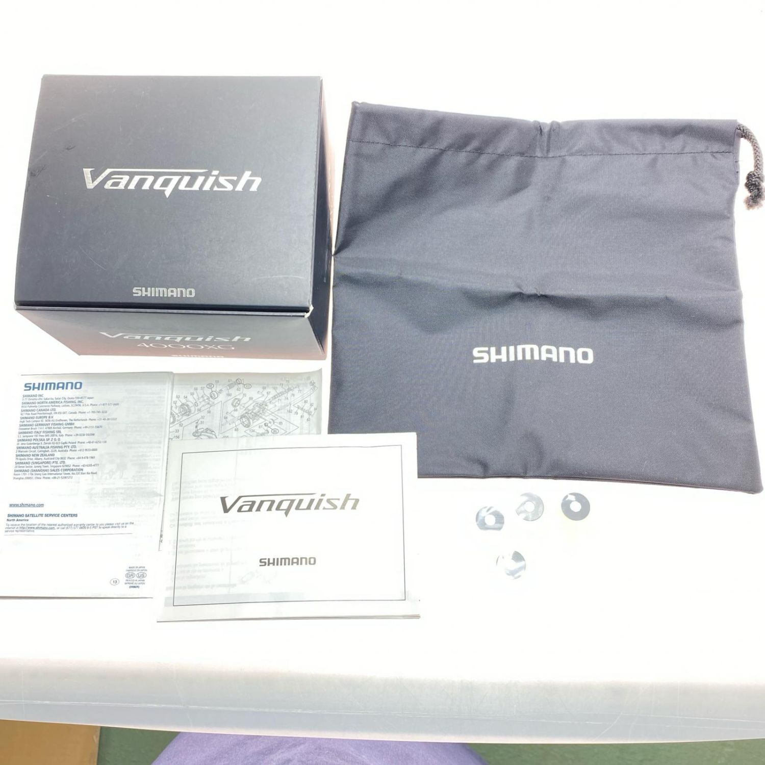 【付属品】取扱説明書,リールポーチ,調整ワッシャー,パーツリスト 取扱説明書、リールポーチ、調整ワッシャー、パーツリスト付き。画像の物がすべてです。