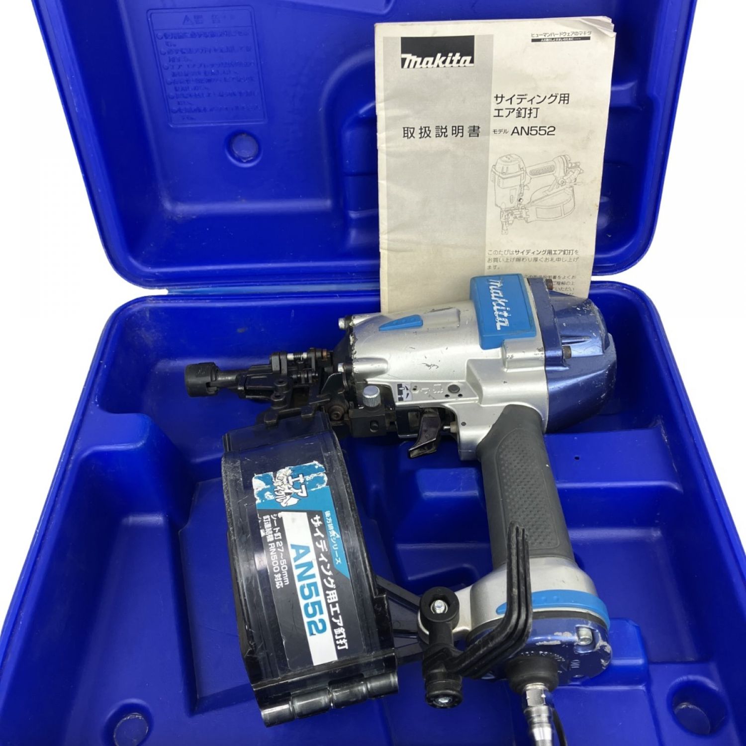 ЗЗ MAKITA マキタ 50mm 常圧 サイディング用エア釘打ち機 取説 ケース付 AN552 ブルー