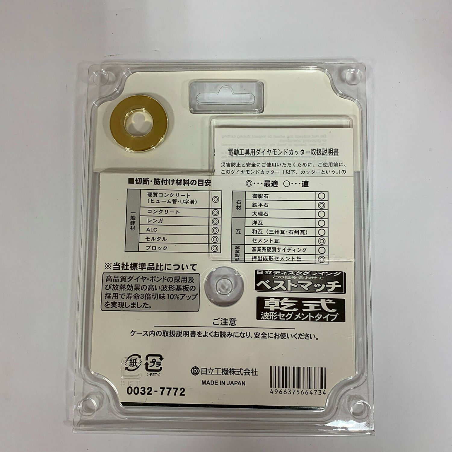 【商品名】中古 HITACHI 日立 ディスクグラインダ用 ダイヤモンドカッター 0032-7772 Sランク