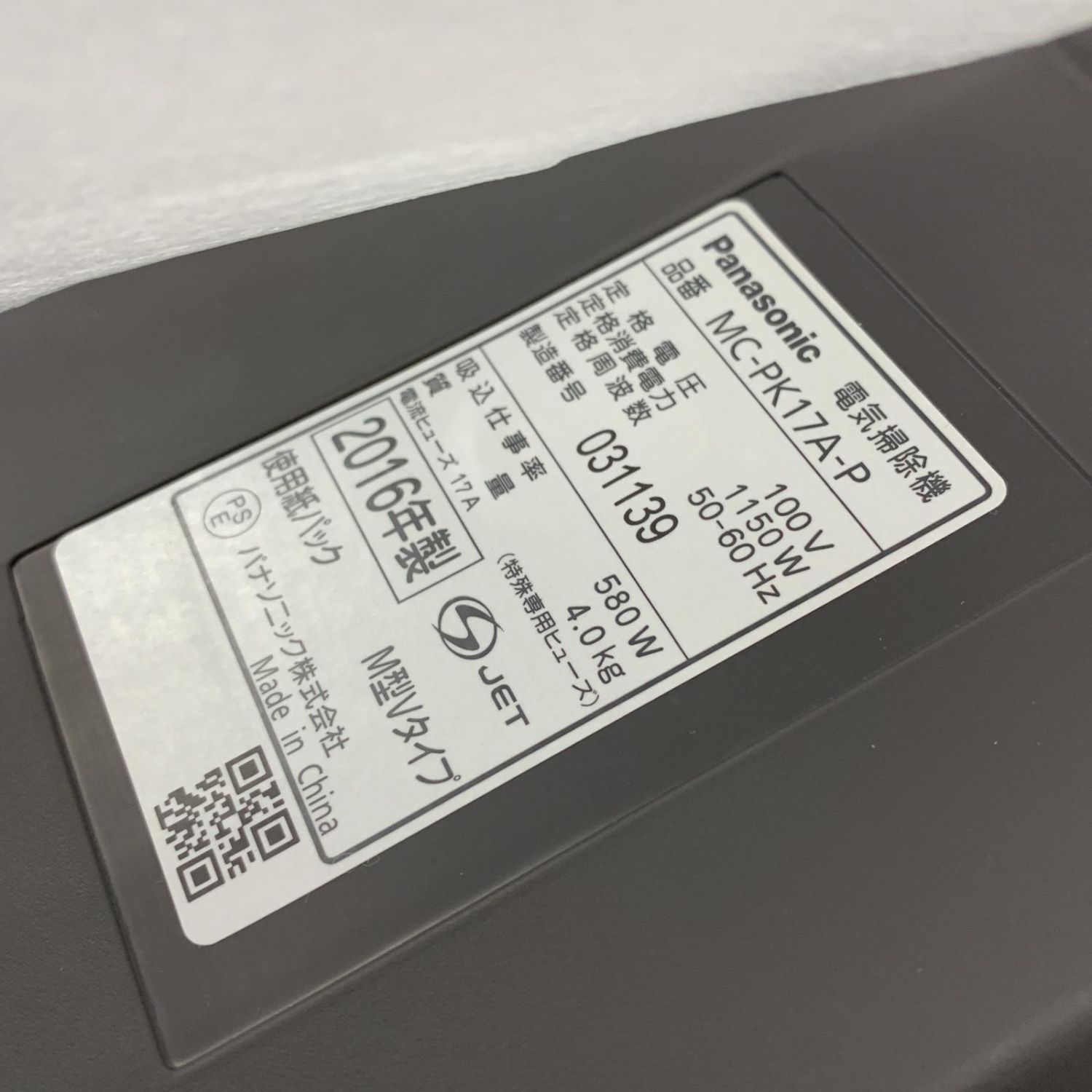 Panasonic パナソニック 電気掃除機 紙パック式 未使用品 2016年製 MC-PK17A ピンクシャンパン