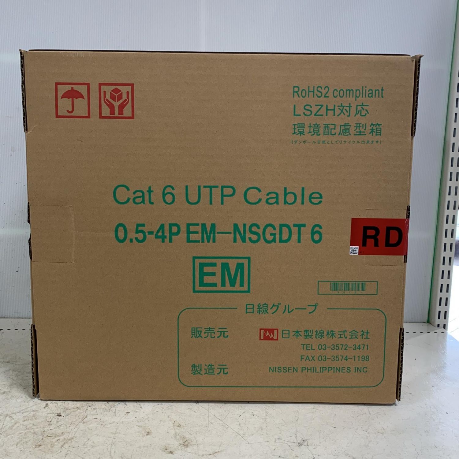 日本製線 300m Cat6 エコケーブル 0.5-4P EM-NSGDT6 RED