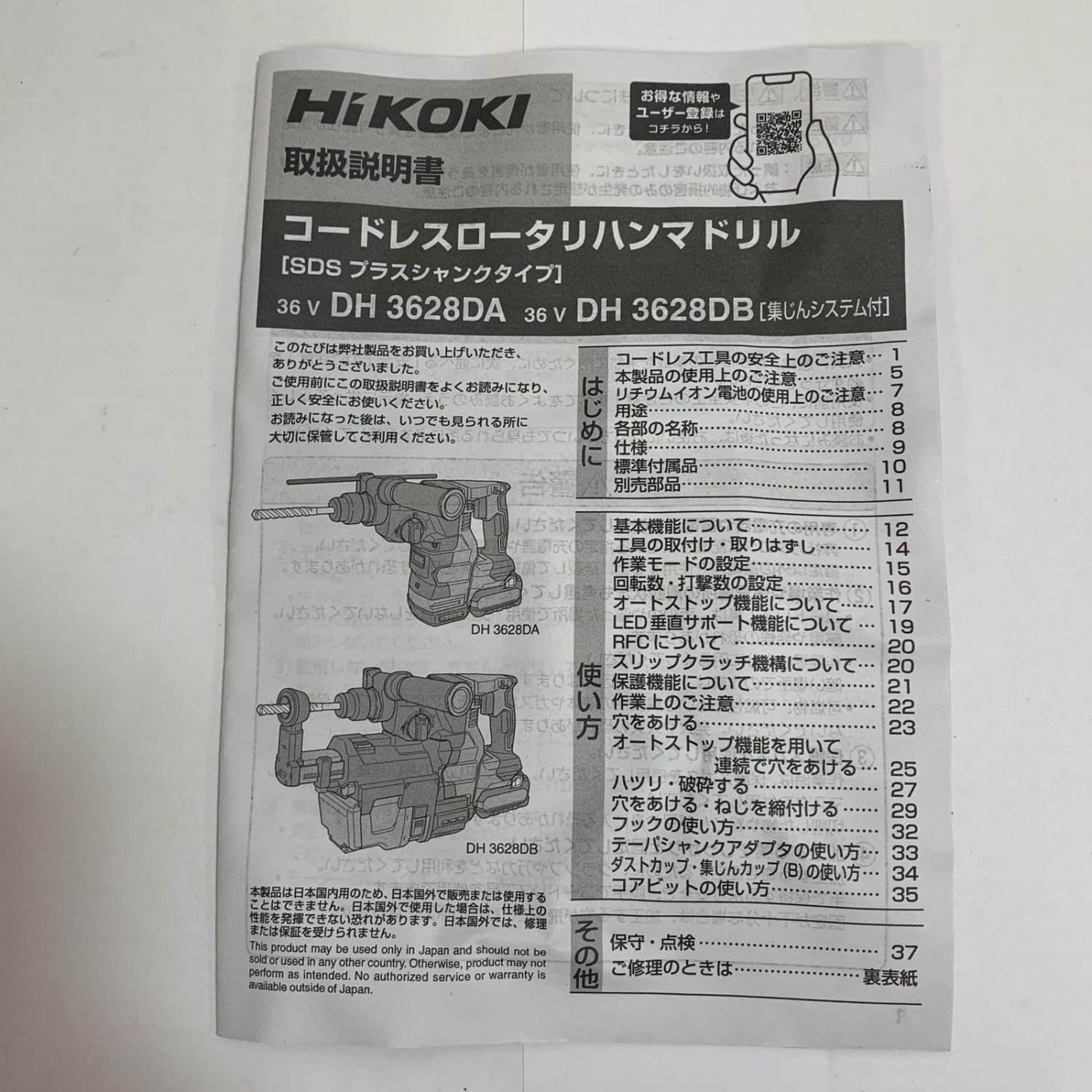HiKOKI ハイコーキ 36v 28mm コードレスロータリハンマドリル 本体とケース DH3628DA