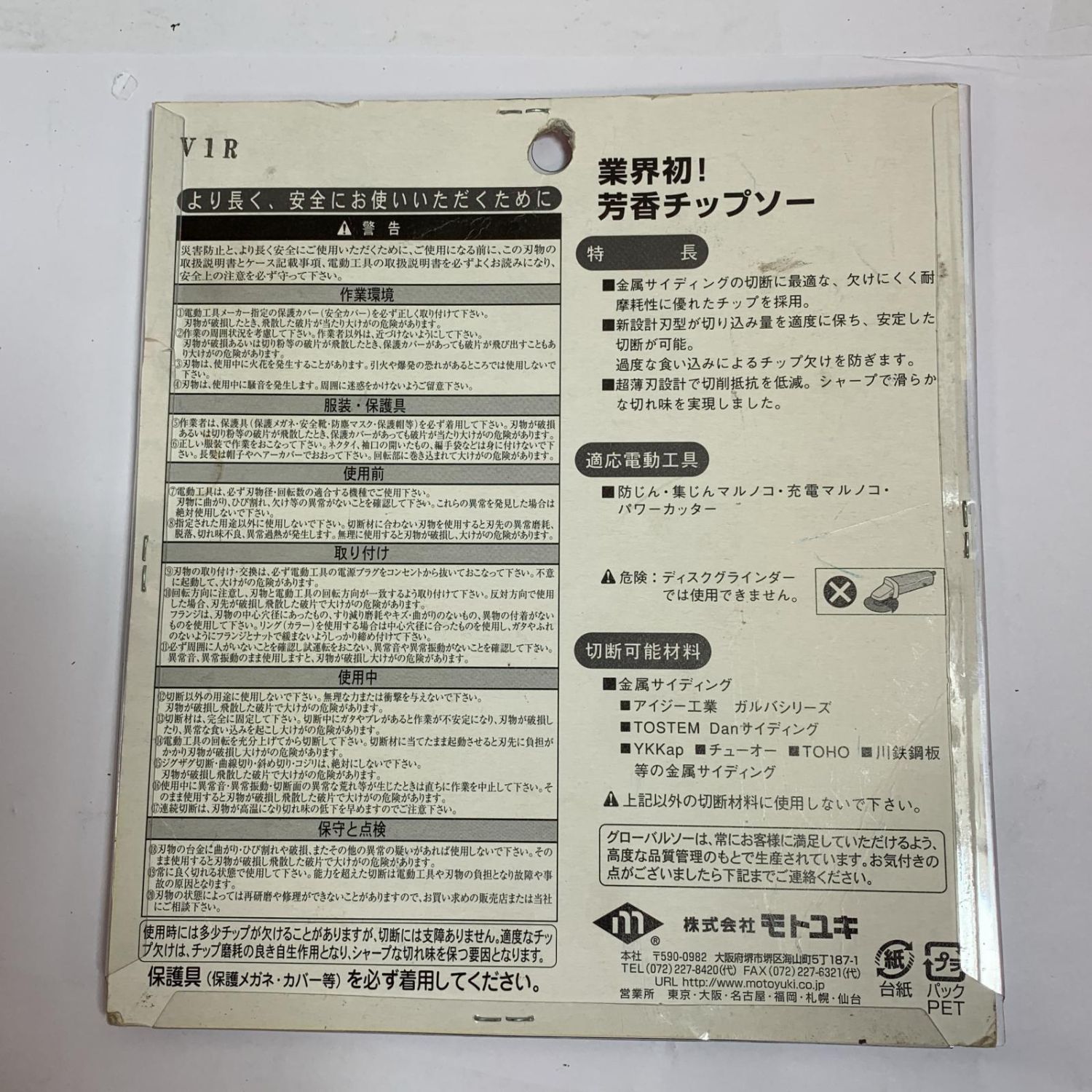 モトユキ プロ用高性能チップソー グローバルソー MK-180H