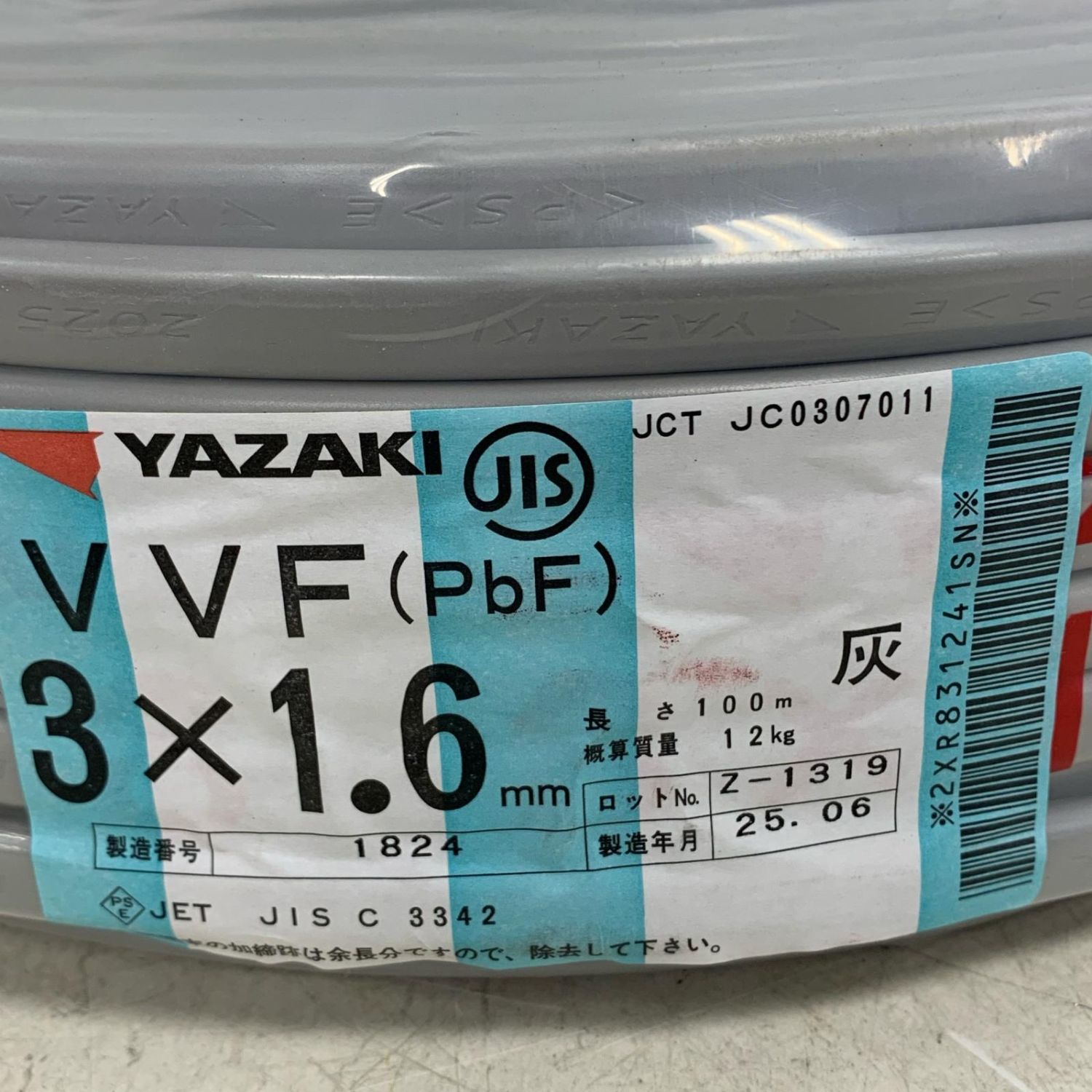 【商品名】中古 YAZAKI VVFケーブル 3×1.6mm 100m 2025.6製 電材 Sランク