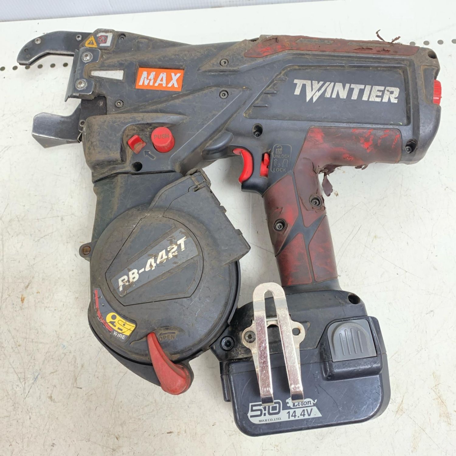 【商品名】中古 MAX マックス リバータイア バッテリ2個(5.0Ah) 充電器 ケース付 RB-442T-B2C/1450A Cランク