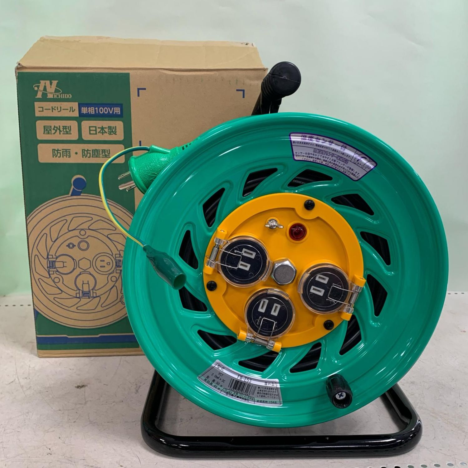 NICHIDO コードリール 単相100V 屋外型 防雨・防塵型 FW-E53 グリーン