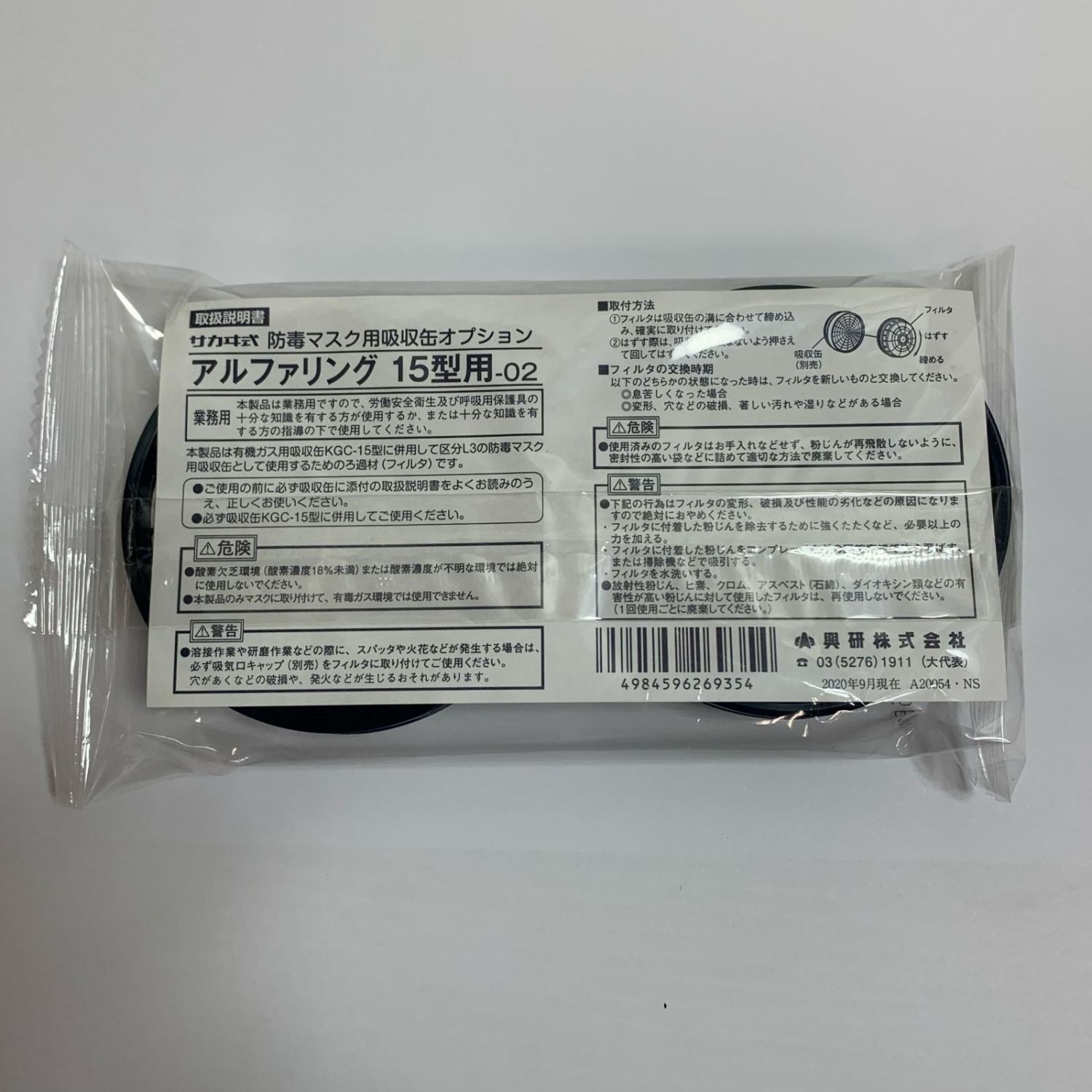 興研 防毒マスク用吸収缶 アルファリング 15型用/KGC-15型 2025.06製造 アルファリング 15型用/KGC-15型