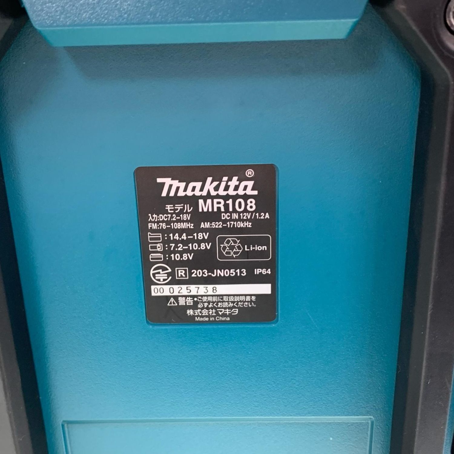 MAKITA マキタ コードレス式 7.2-18v 充電式ラジオ 本体のみ 動作OK MR108 ブルー