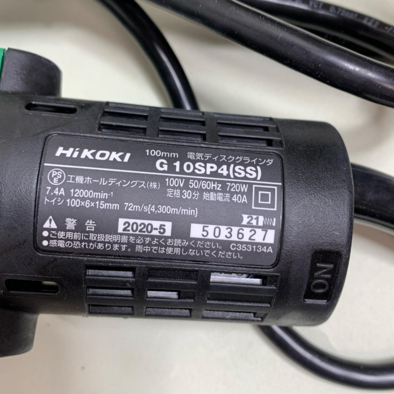 【商品名】中古 HiKOKI ハイコーキ ディスクグラインダー 本体のみ コード式 100v G10SP4 グリーン Aランク