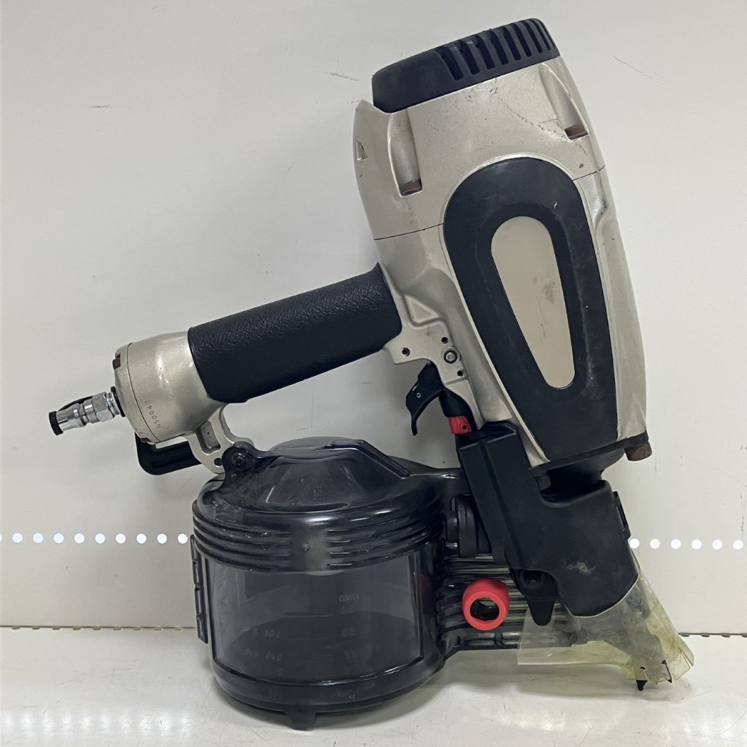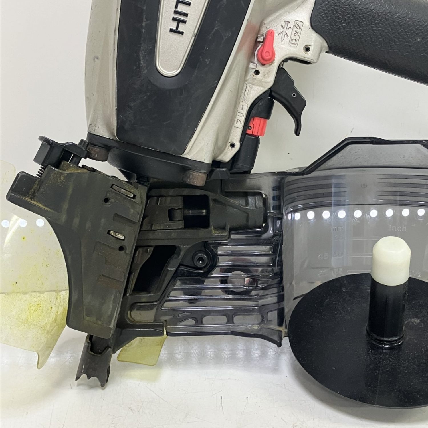 【商品名】中古 HITACHI 日立 90mm 常圧 ロール釘打ち機 取説 保護メガネ ケース付 NV90AB3 シルバー×ブラック Bランク