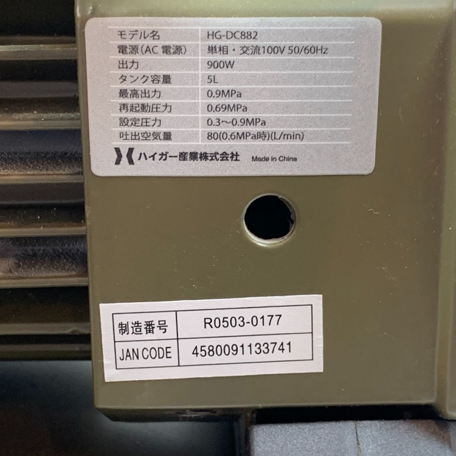 【商品名】中古 HAIGE 工具 大型機械 コンプレッサー HG-DC882 Aランク