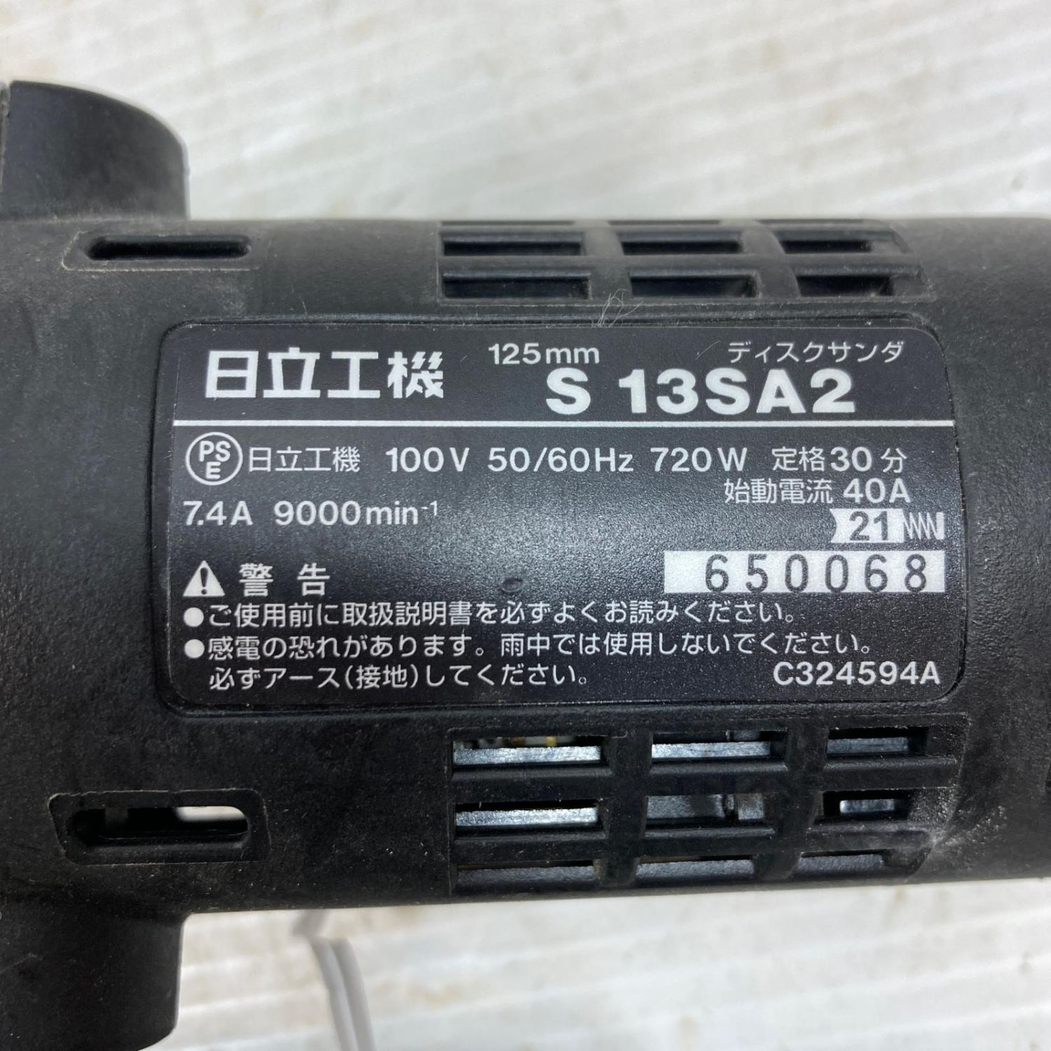 【商品名】中古 HITACHI 日立 研磨工具 ディスクサンダー コード式 125mm 100v 650068 S13SA2 シルバー Bランク