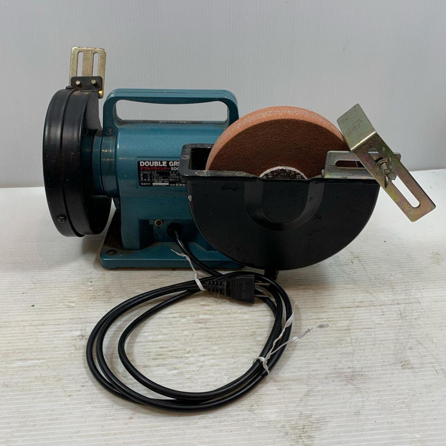 【商品名】中古 SHINKO(新興製作所) 研磨工具 両頭グラインダー コード式 150mm 100v 9706 SDG-150H グリーン Bランク