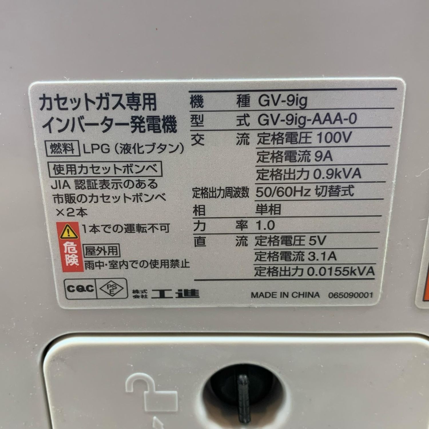【商品名】中古 KOSHIN 大型機械 インバーター発電機 カセットガス式 240621121 GV-9ig ライトグレー Bランク