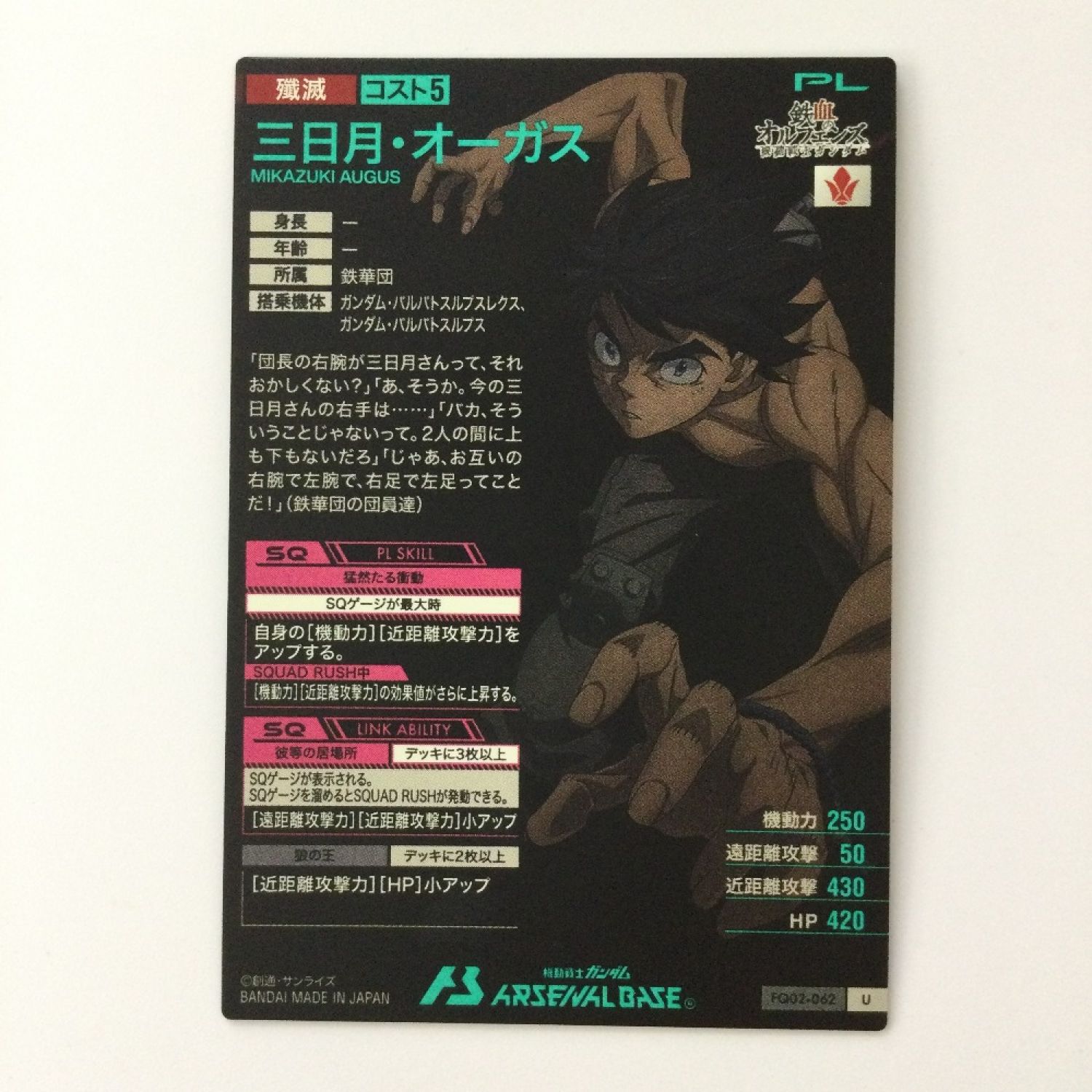 【商品名】中古 ガンダム アーセナルベース 三日月・オーガス FQ02-062 U アルティメットレア Bランク