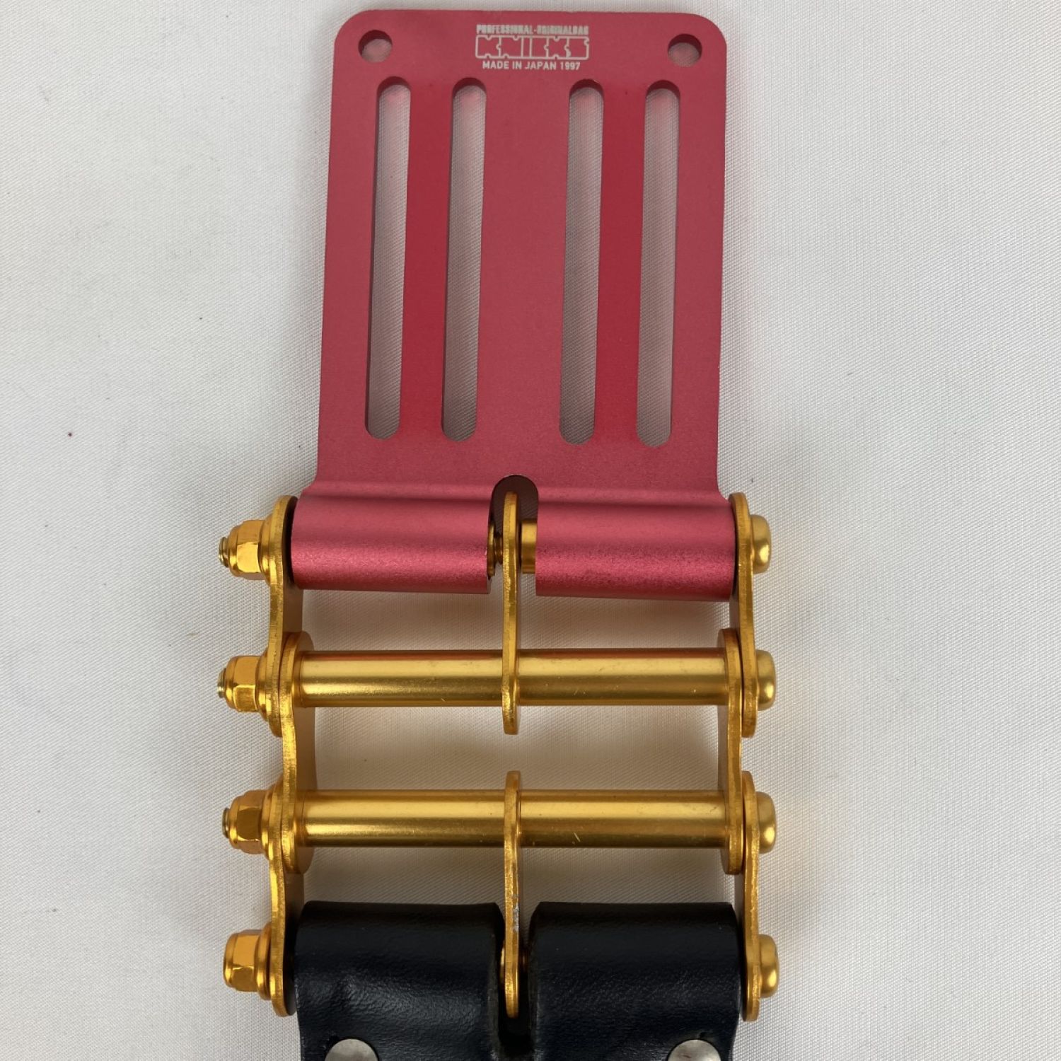【商品名】中古 KNICKS 5分~1寸用 ヌメ革 ノミホルダー ベルトループ・チェーン金具付き KB-010DX ブラック×レッド×ゴールド Bランク