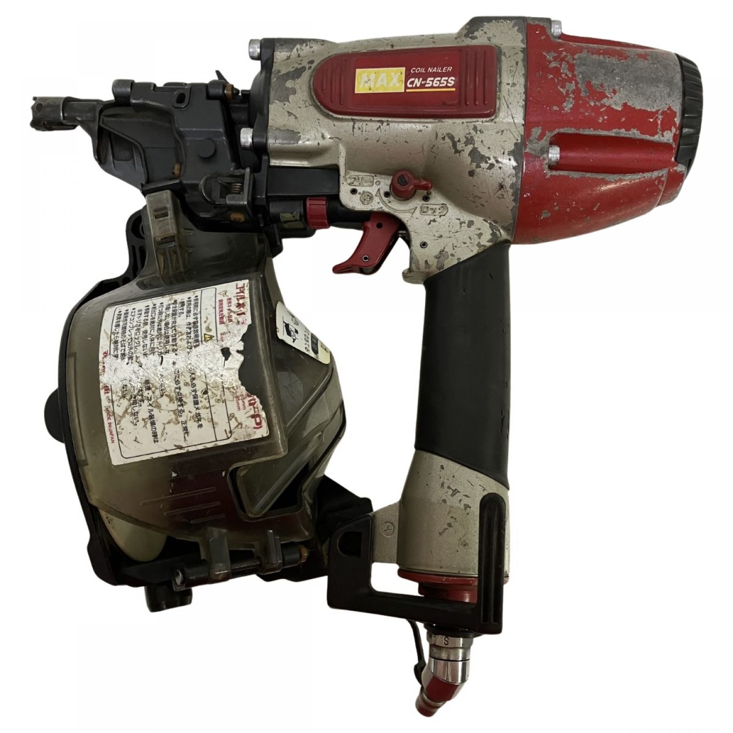 【商品名】中古 MAX マックス 65mm 常圧 エア釘打ち機 ケース付 CN-565S レッド Cランク
