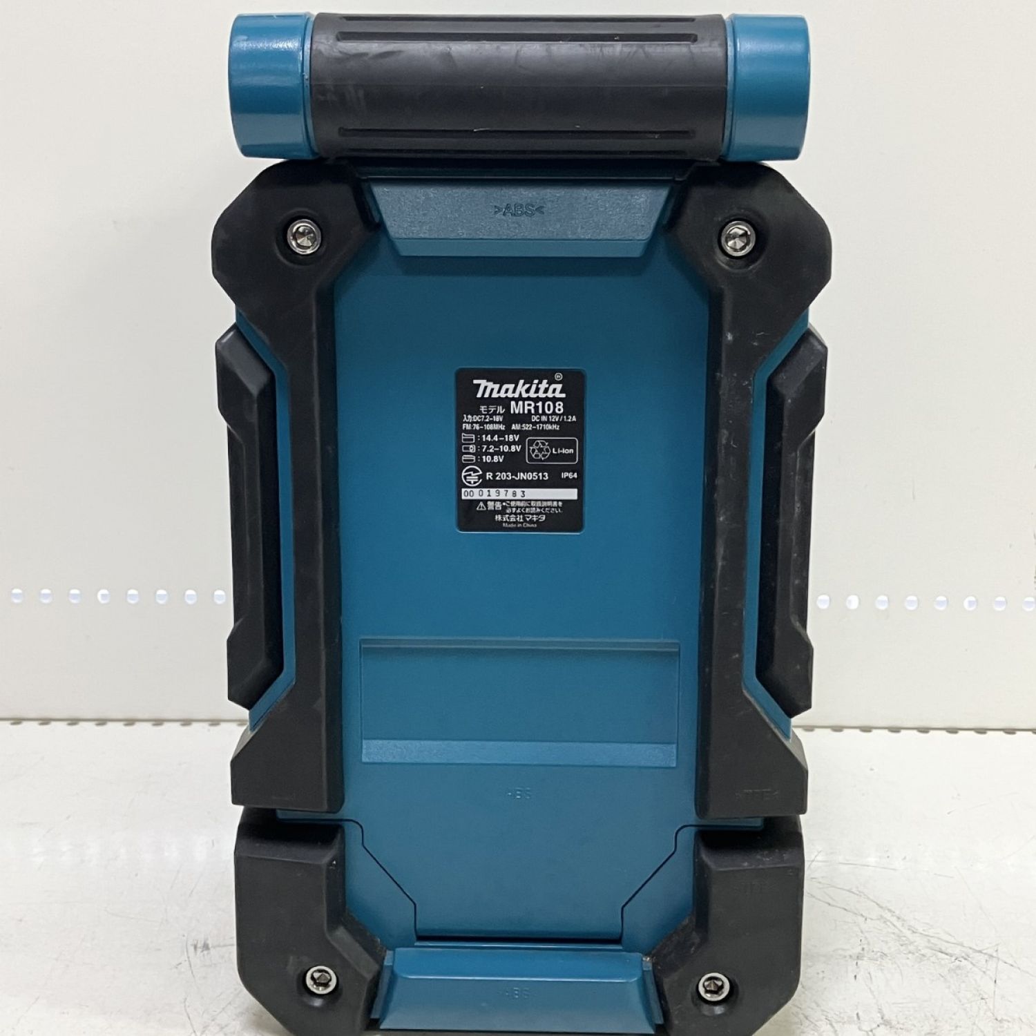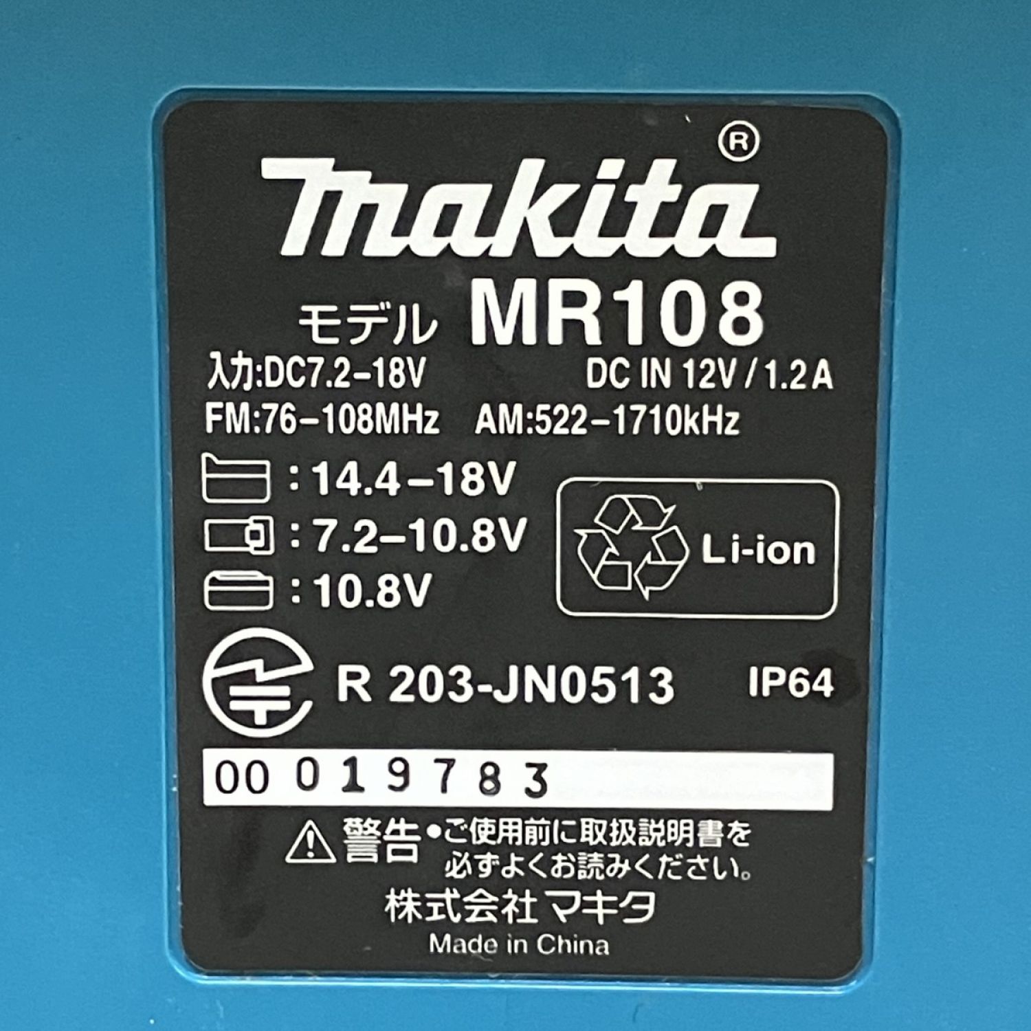 【商品名】中古 MAKITA マキタ 14.4/18/100V バッテリー式ラジオ ACアダプター付 MR108 ブルー Bランク