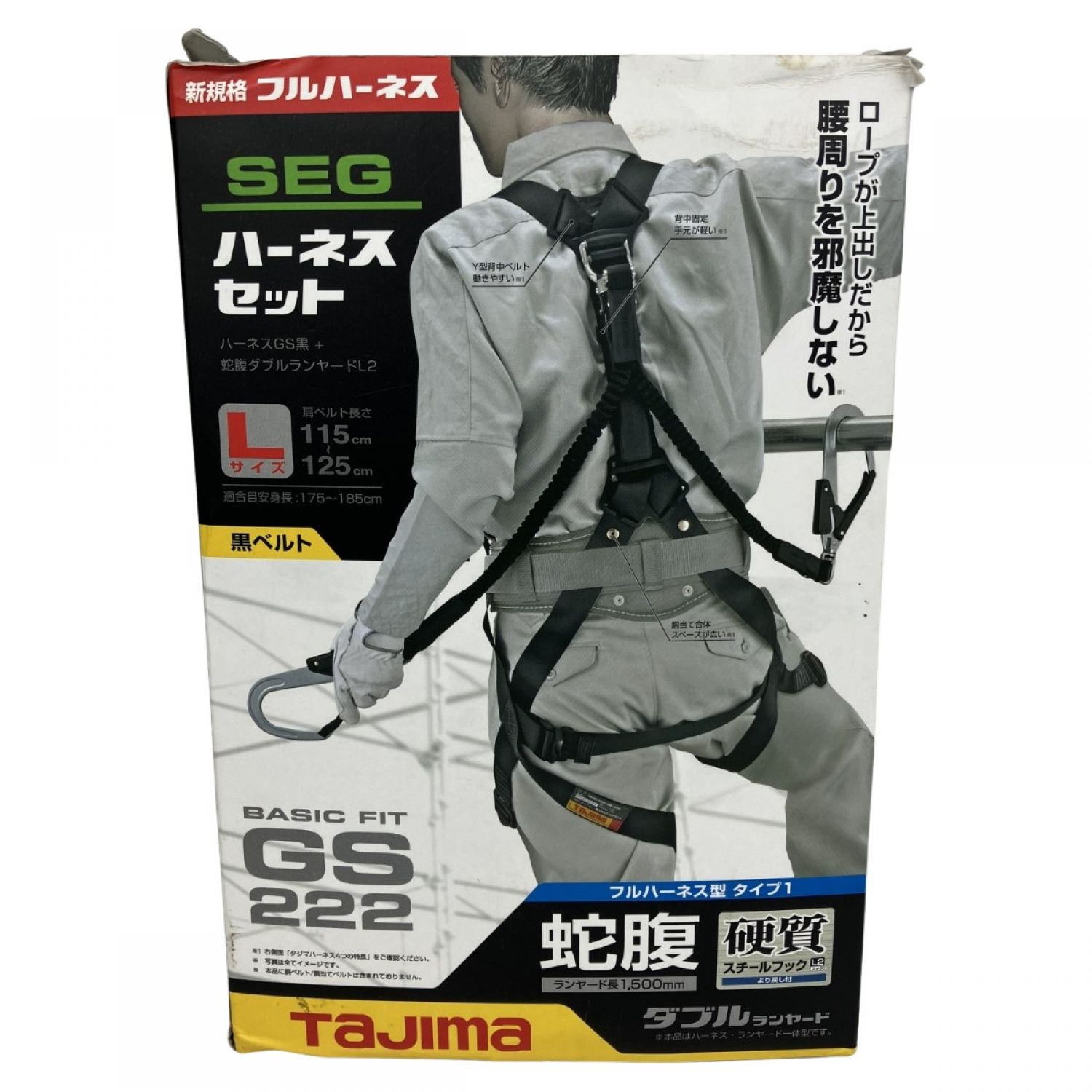 【商品名】中古 TAJIMA タジマ Lサイズ フルハーネス型安全帯 蛇腹ダブルランヤード 外箱付 A1GSLJR-WL2BK ブラック Sランク