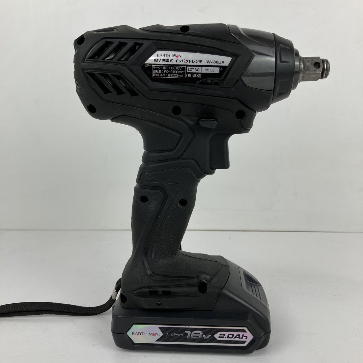 【商品名】中古 EARTH MAN アースマン 18v インパクトレンチ バッテリーx1 充電器 ケース付 IW-180LiA ブラック Bランク