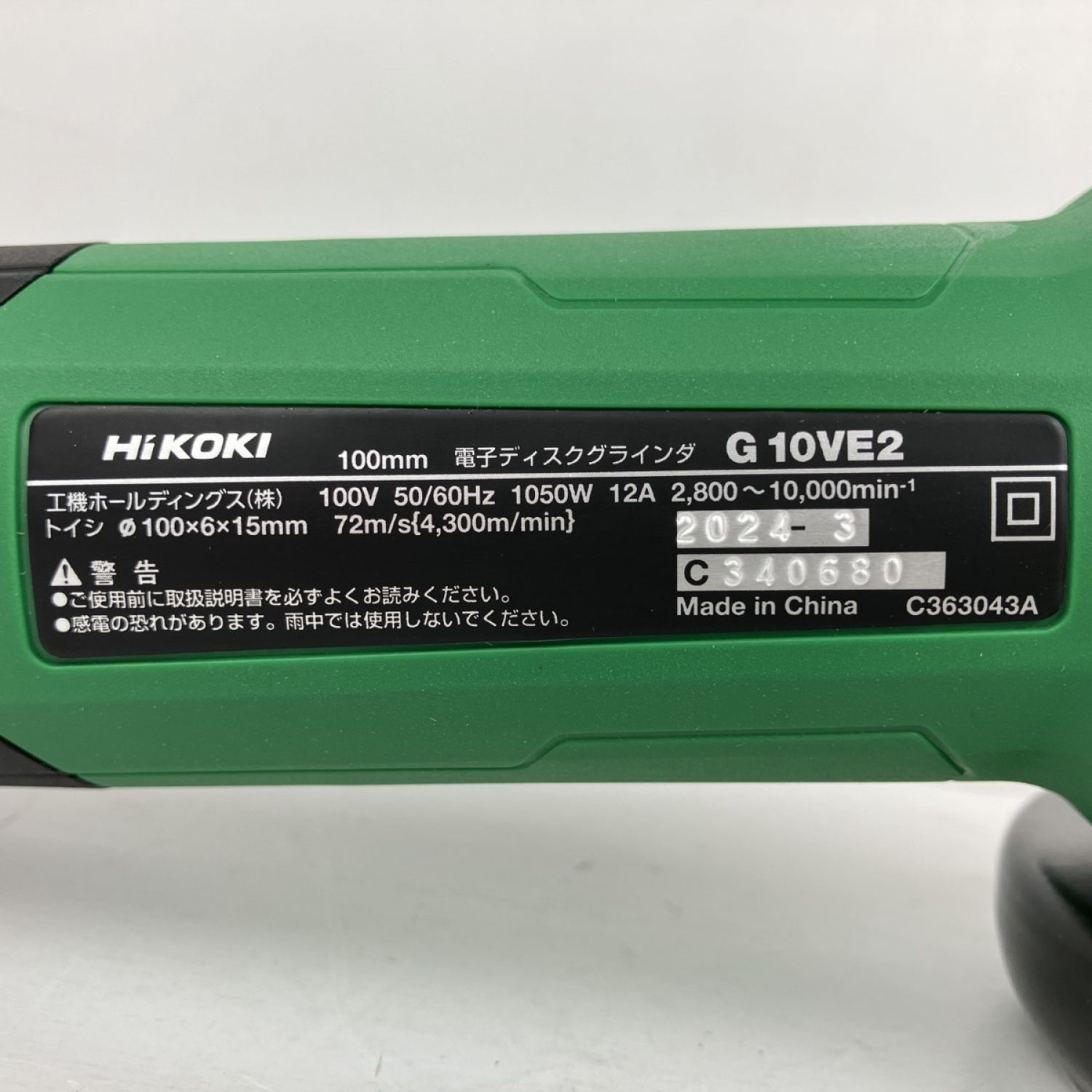 ЗЗ HiKOKI ハイコーキ 100v 100mm ディスクグラインダー ハンドル・取説・外箱付 G10VE2 グリーン×ブラック