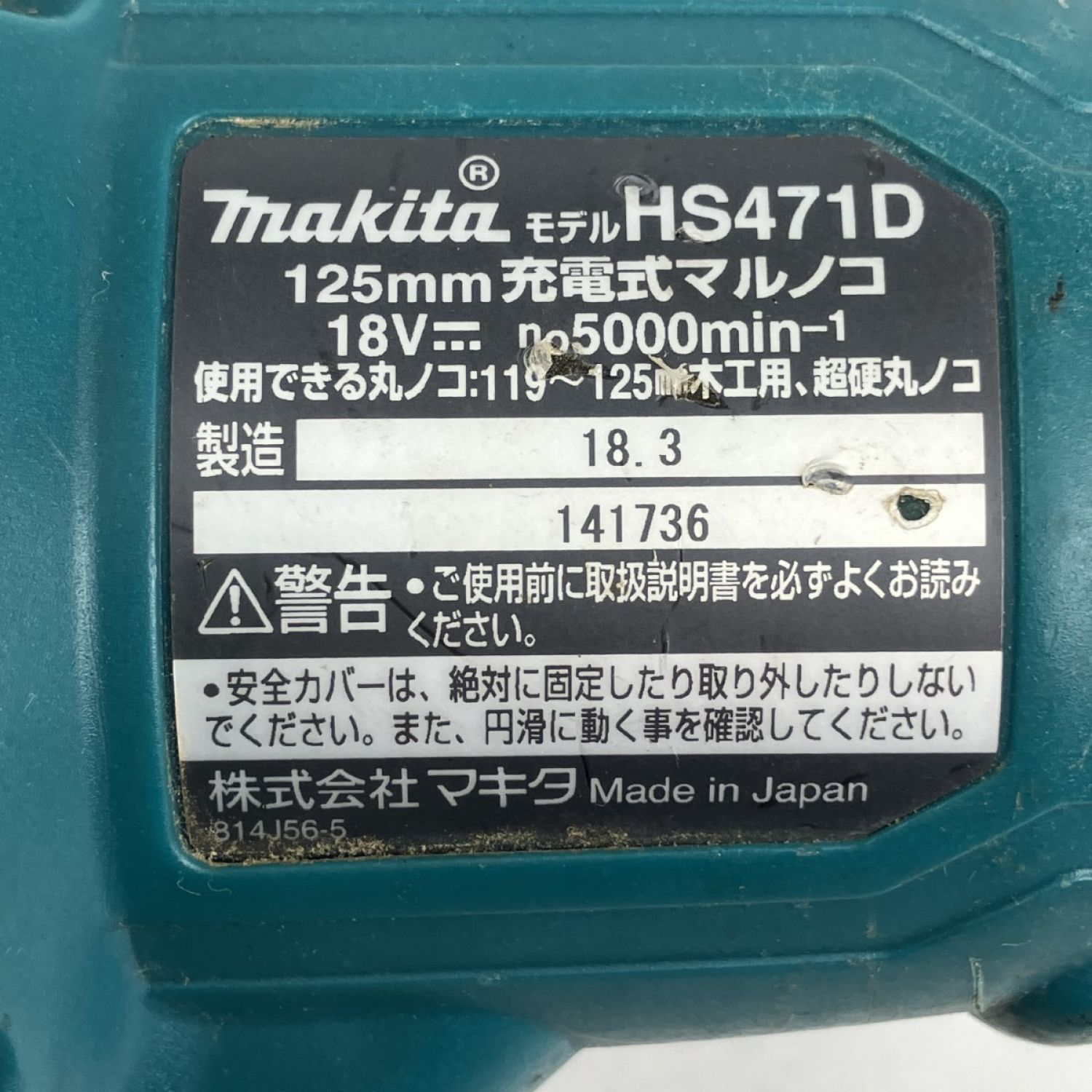 ЗЗ MAKITA マキタ 18v 125mm 充電式丸のこ バッテリー×1付 ※充電器なし HS471D ブルー