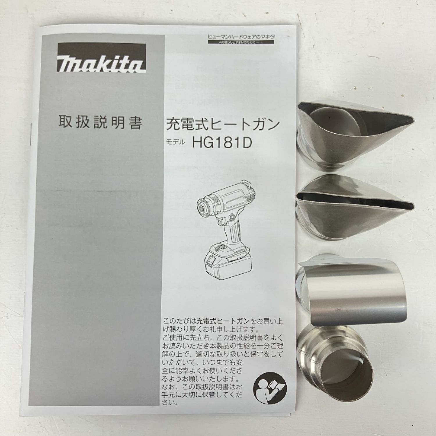 ЗЗ MAKITA マキタ 18v 充電式ヒートガン アタッチメント 取説 ケース付 ※充電器・バッテリーなし HG181D ブルー