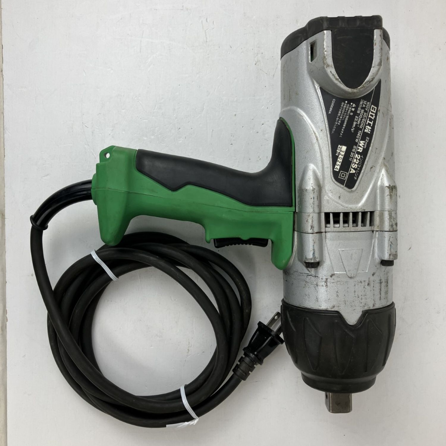 【商品名】中古 HITACHI 日立 100v 19mm インパクトレンチ ソケット3種 ケース付 WR22SA グリーン Cランク