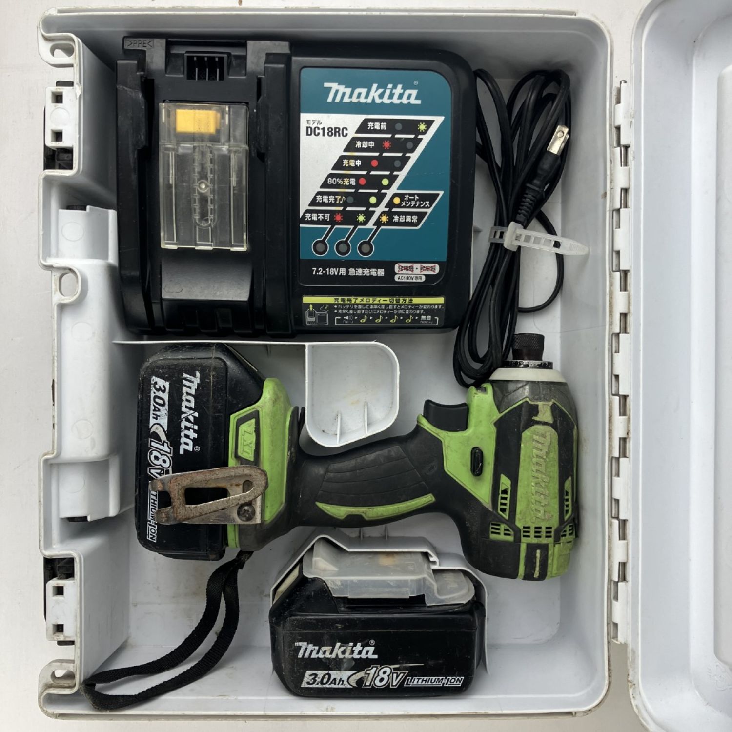 ЗЗ MAKITA マキタ 18v 充電式インパクトドライバ バッテリーx2 充電器 ケース付 TD149D 黄緑