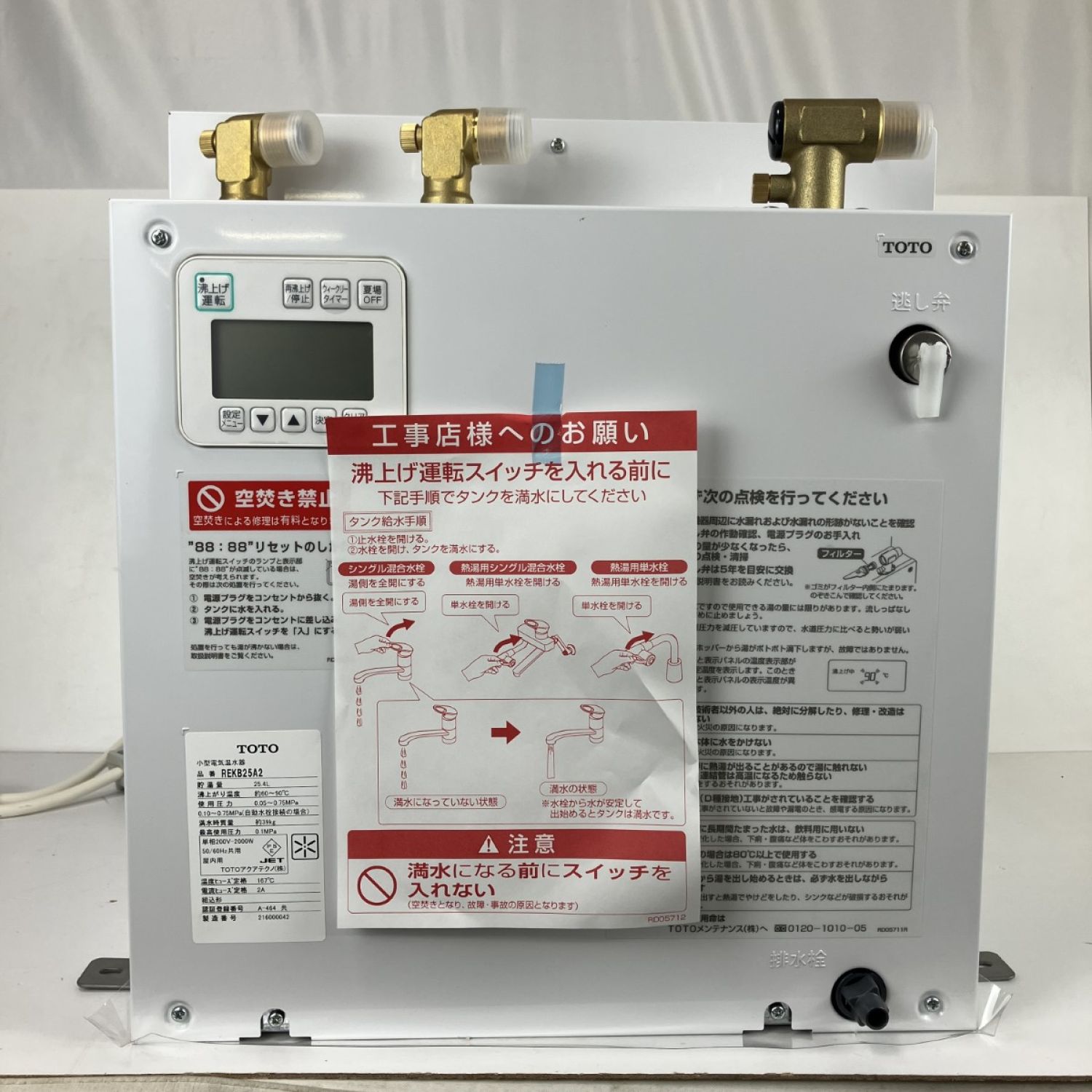 ЗЗ TOTO トートー 単相200v 貯湯量25.4L 電気温水器 取説付 REKB25A2 ホワイト