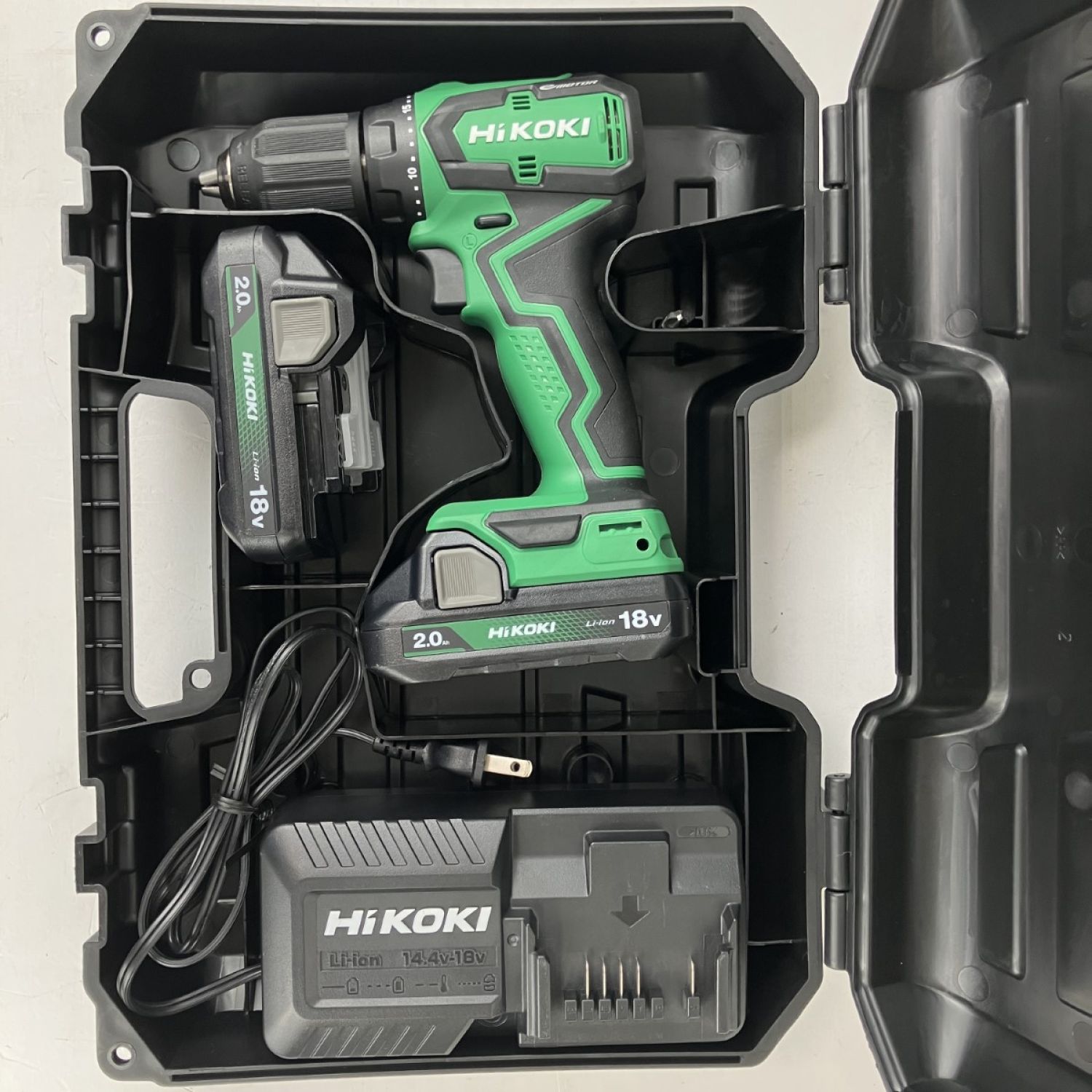 ЗЗ HiKOKI ハイコーキ 18v 13mm コードレスドライバドリル バッテリーx2 充電器 ケース付 DS18DD グリーン