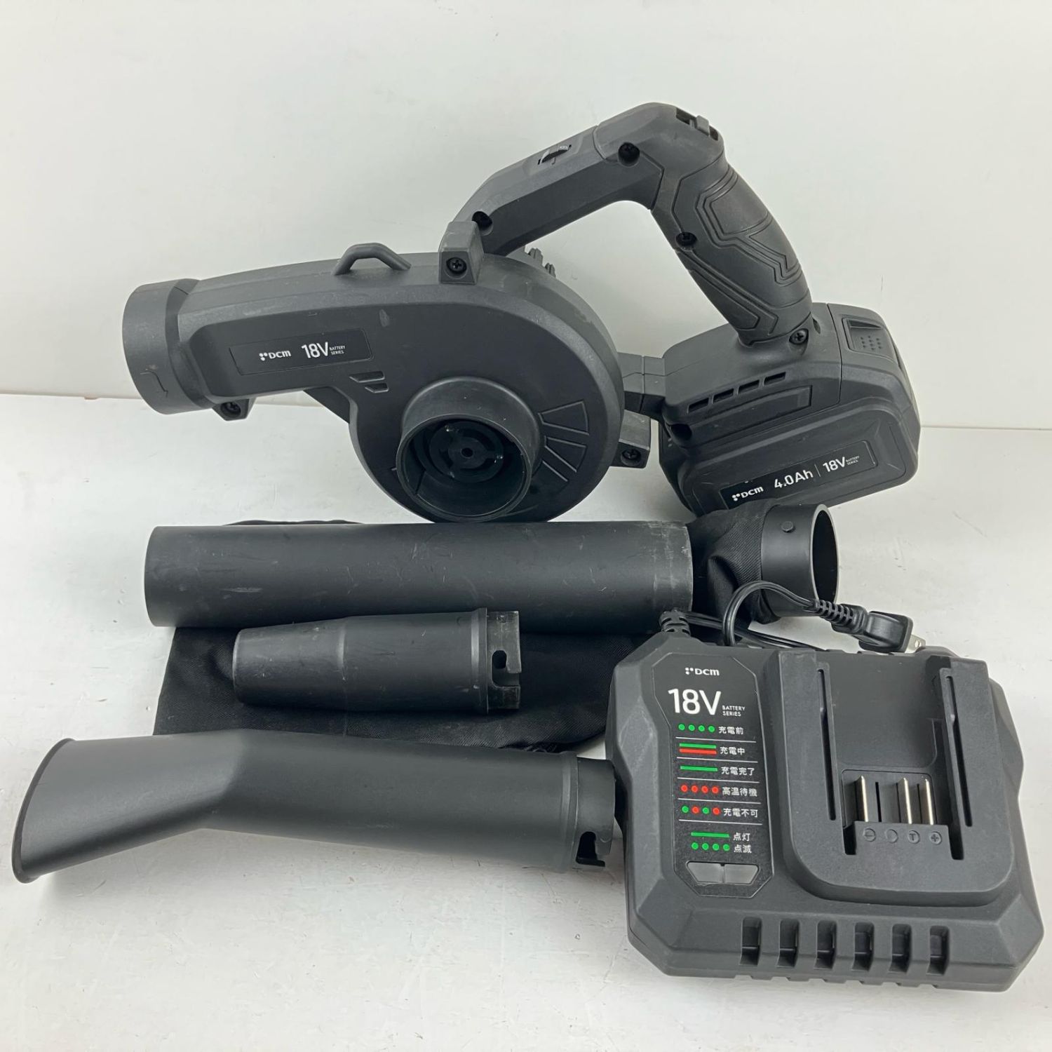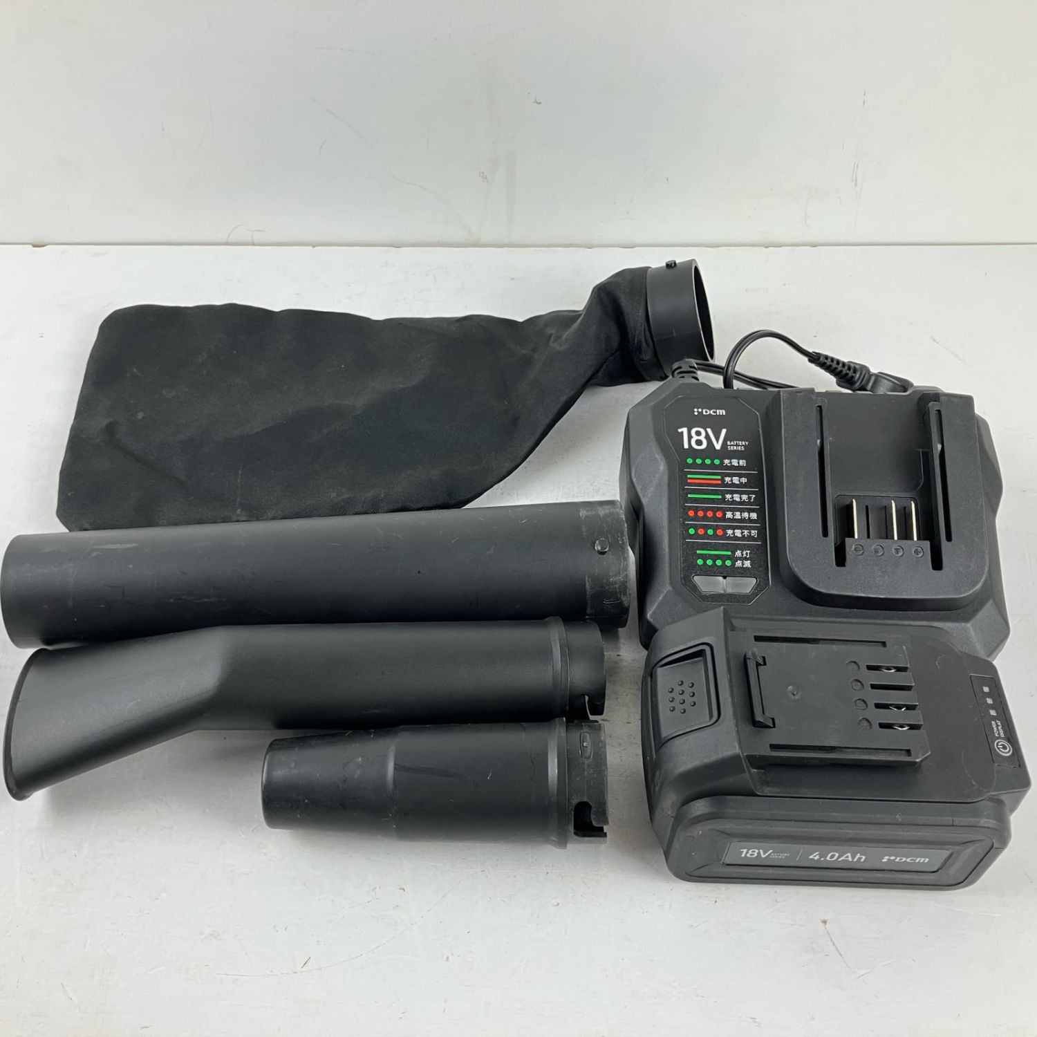 【商品名】中古 DCM ディーシーエム 18v 充電式ブロワ 充電器 バッテリー×1 ノズル付 ブラック Bランク