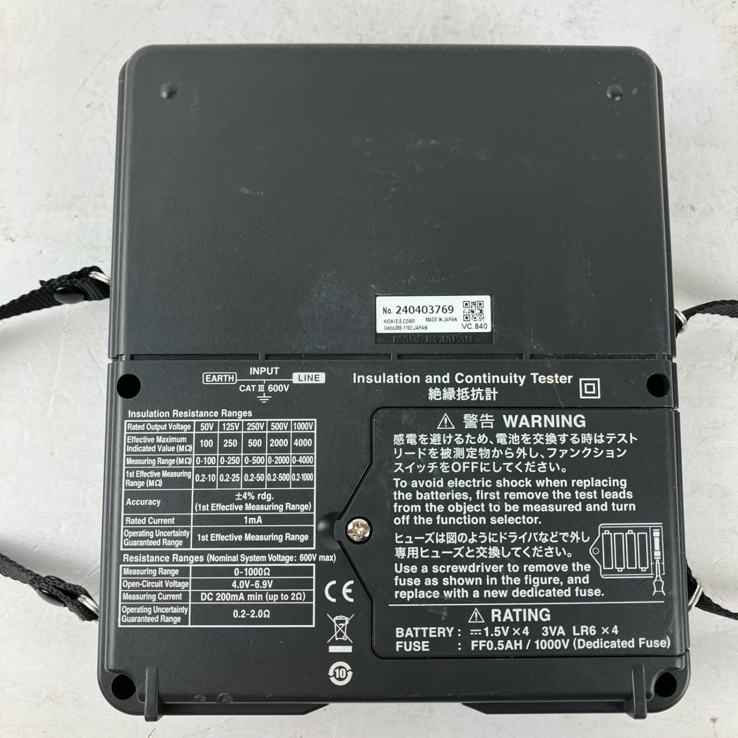 ЗЗ HIOKI 単三電池×4 絶縁抵抗計 取説付 IR4051-10 ブラック
