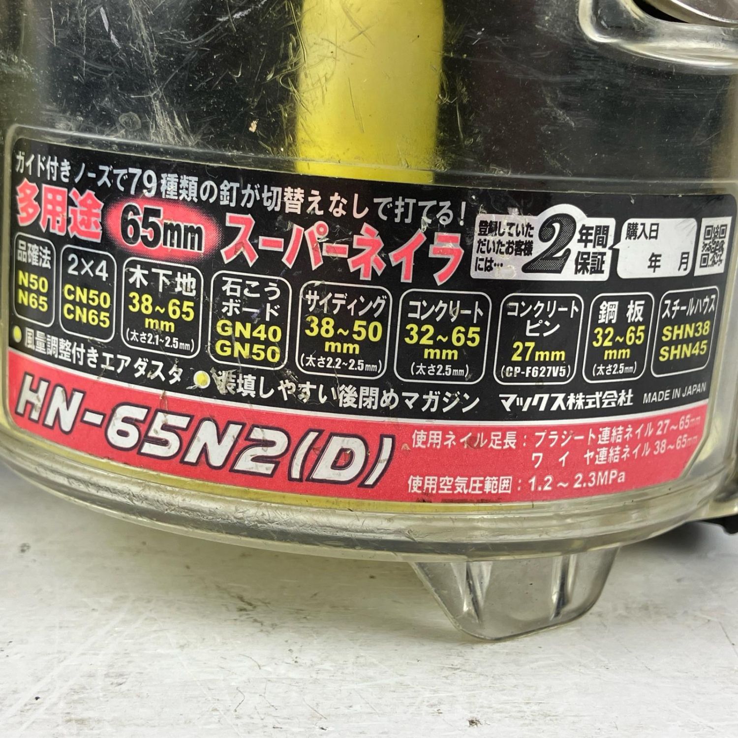 【商品名】中古 MAX マックス 65mm 高圧 エア釘打ち機 ケース付 HN-65N2(D) レッド Cランク